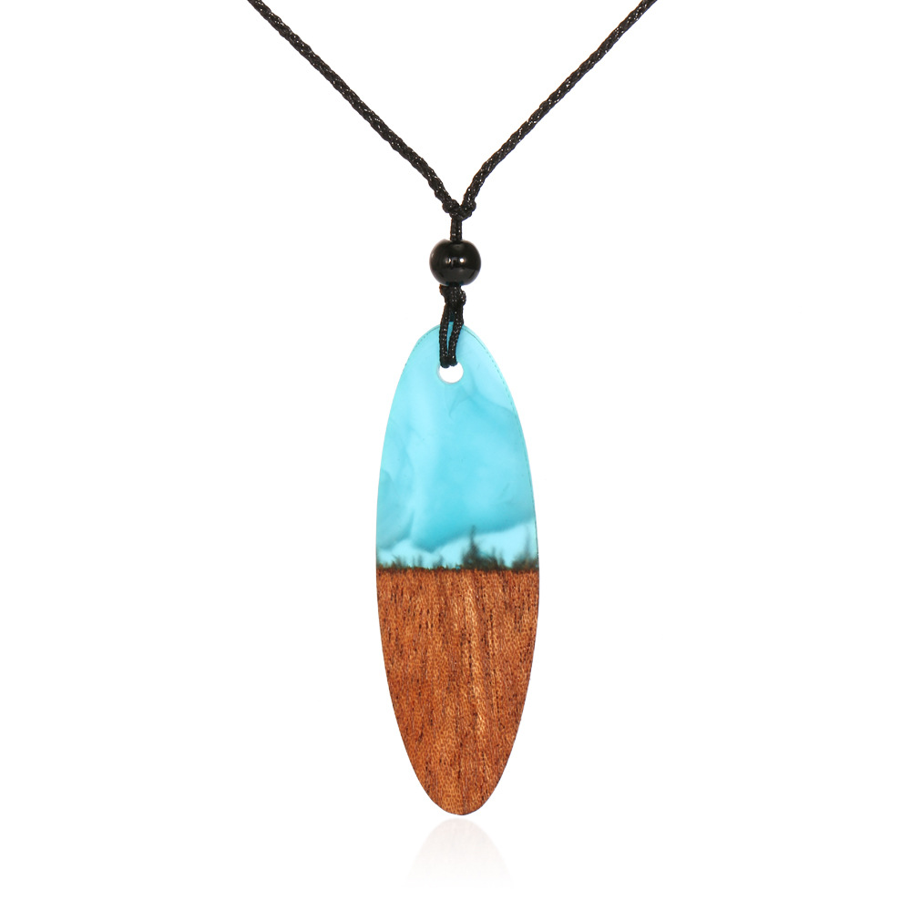 European And American Fashion Creative New Resin And Wood Female Original Pendant Time Solid Wood Necklace Sweater Chain
