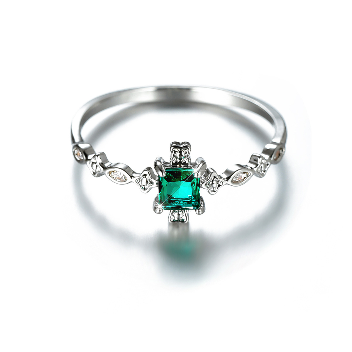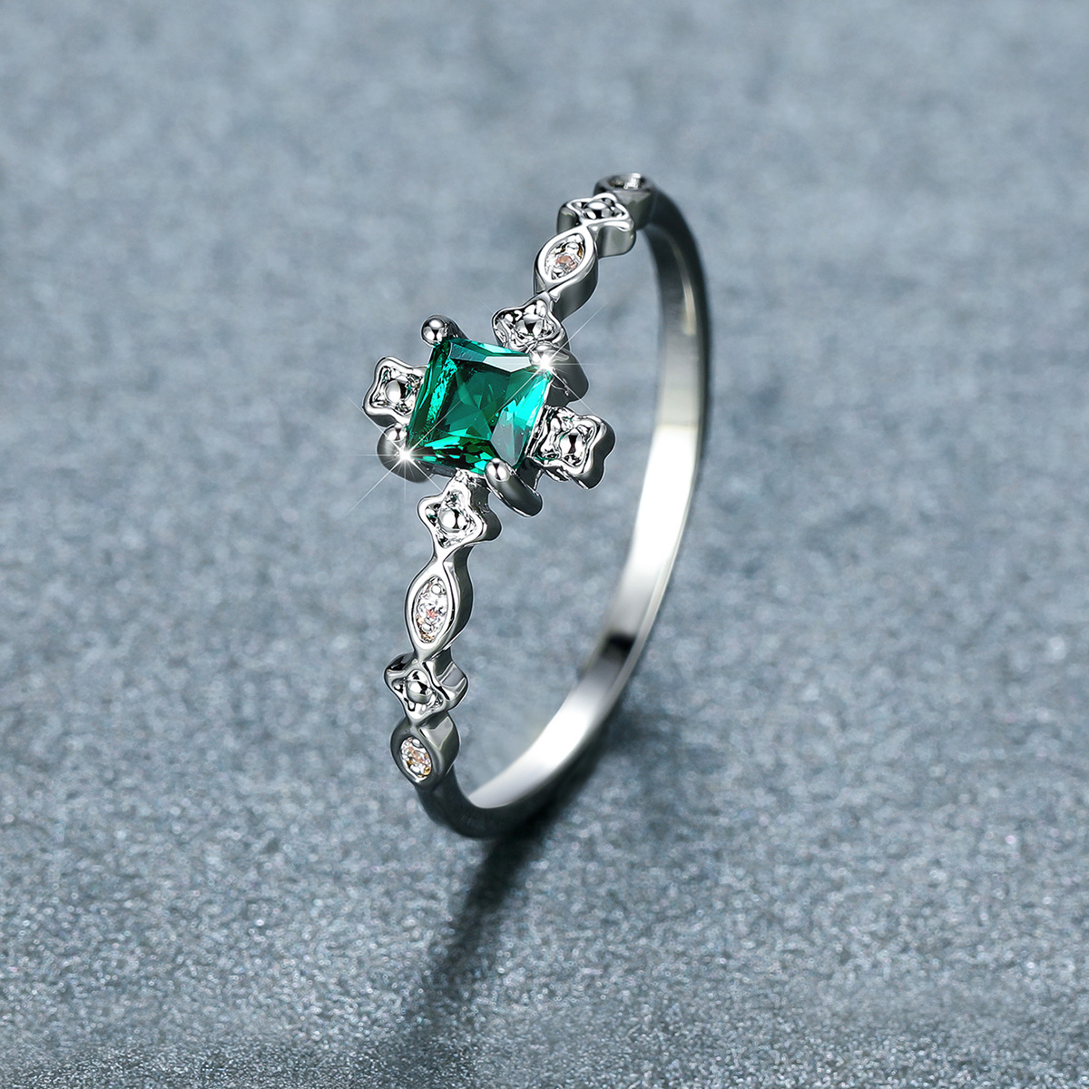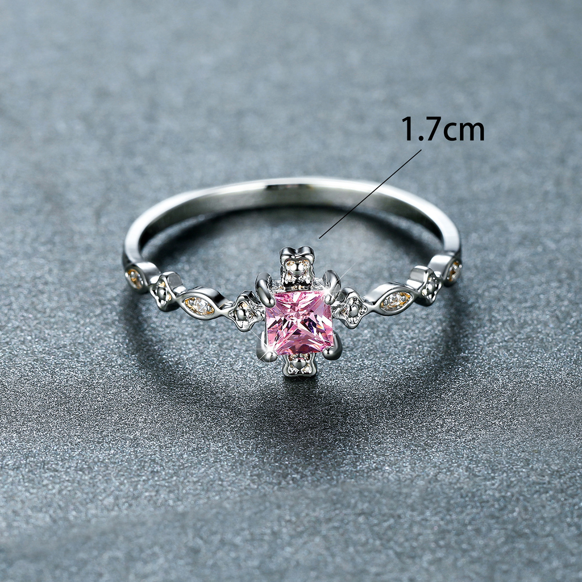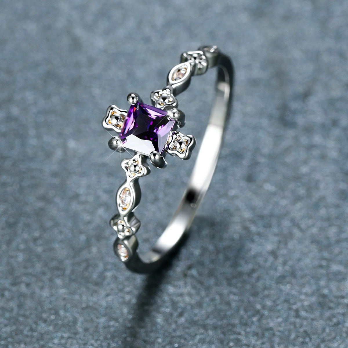 Color: white gold inlaid with black square zircon, white gold inlaid with purple square zircon, white gold inlaid with green square zircon, white gold inlaid with pink square zircon, white gold inlaid with red square zircon.