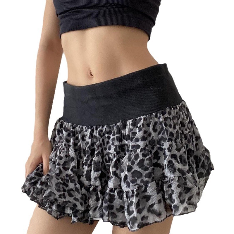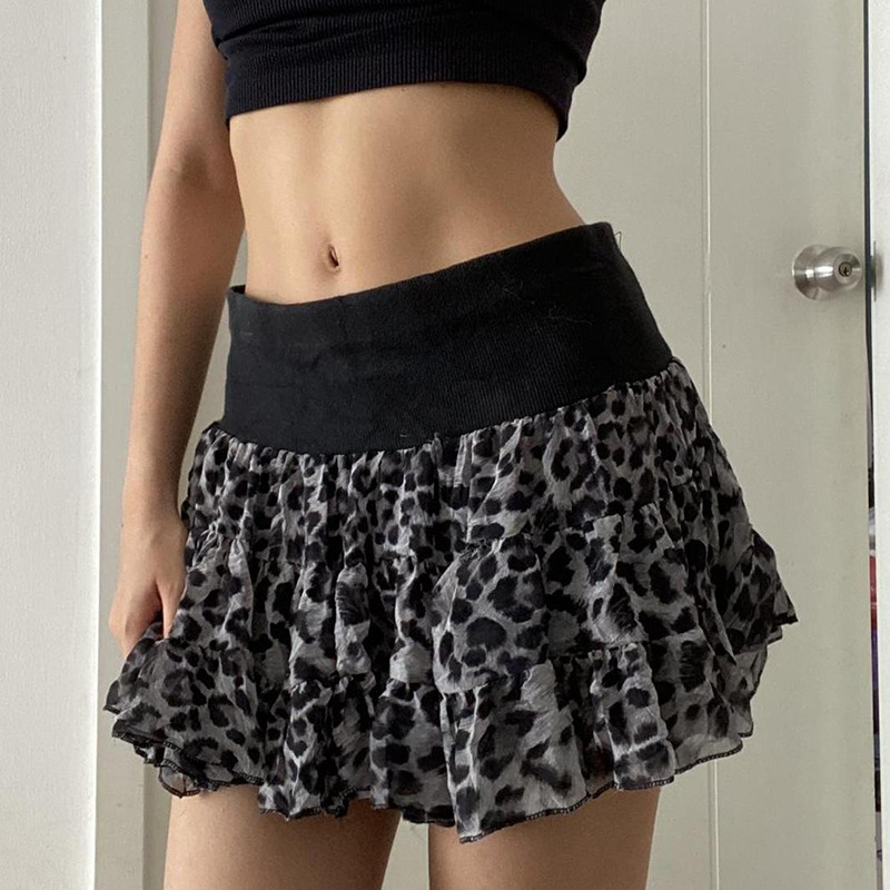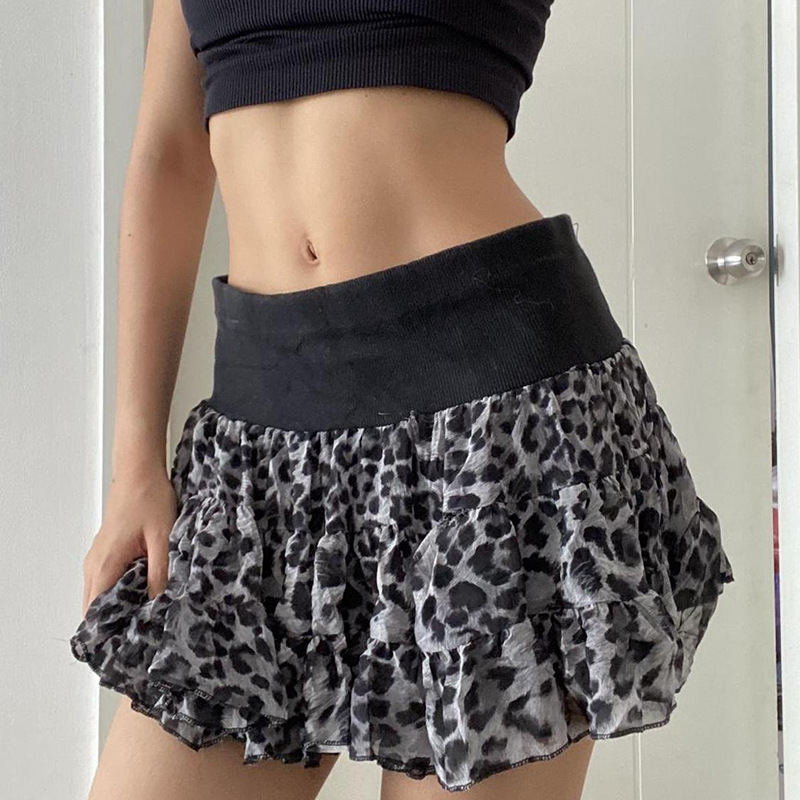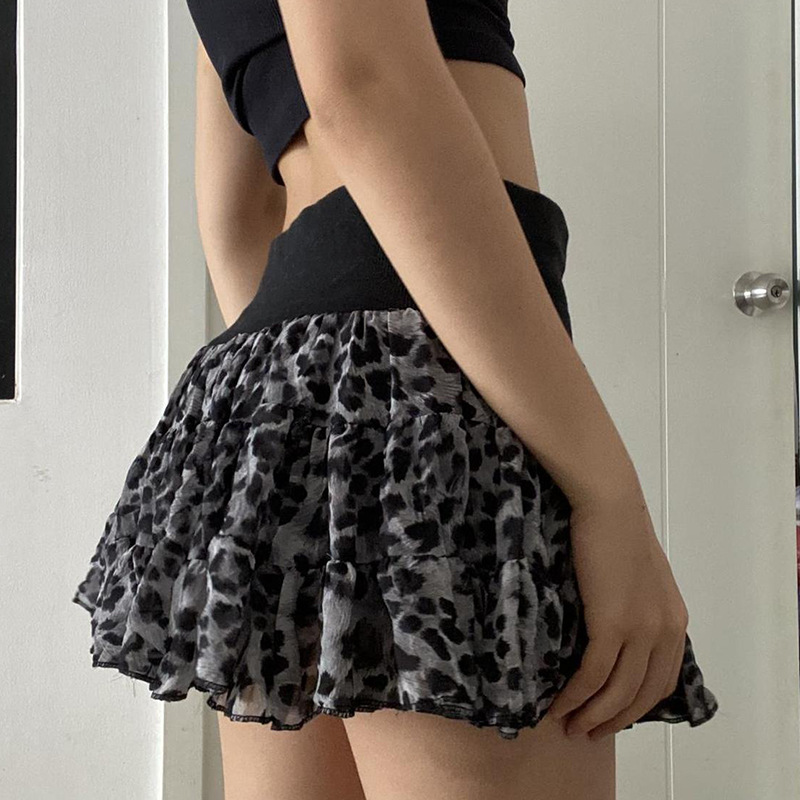 European And American Fashion Hot Girl Sexy Leopard Splicing Skirt