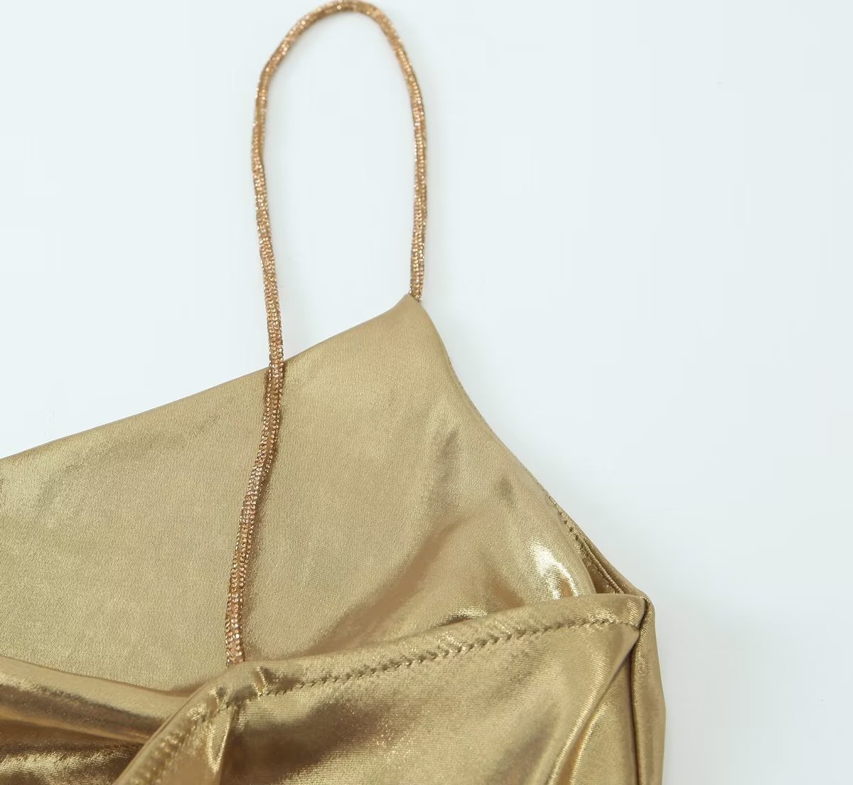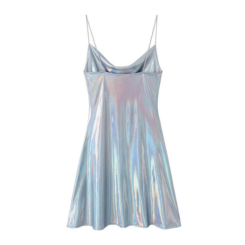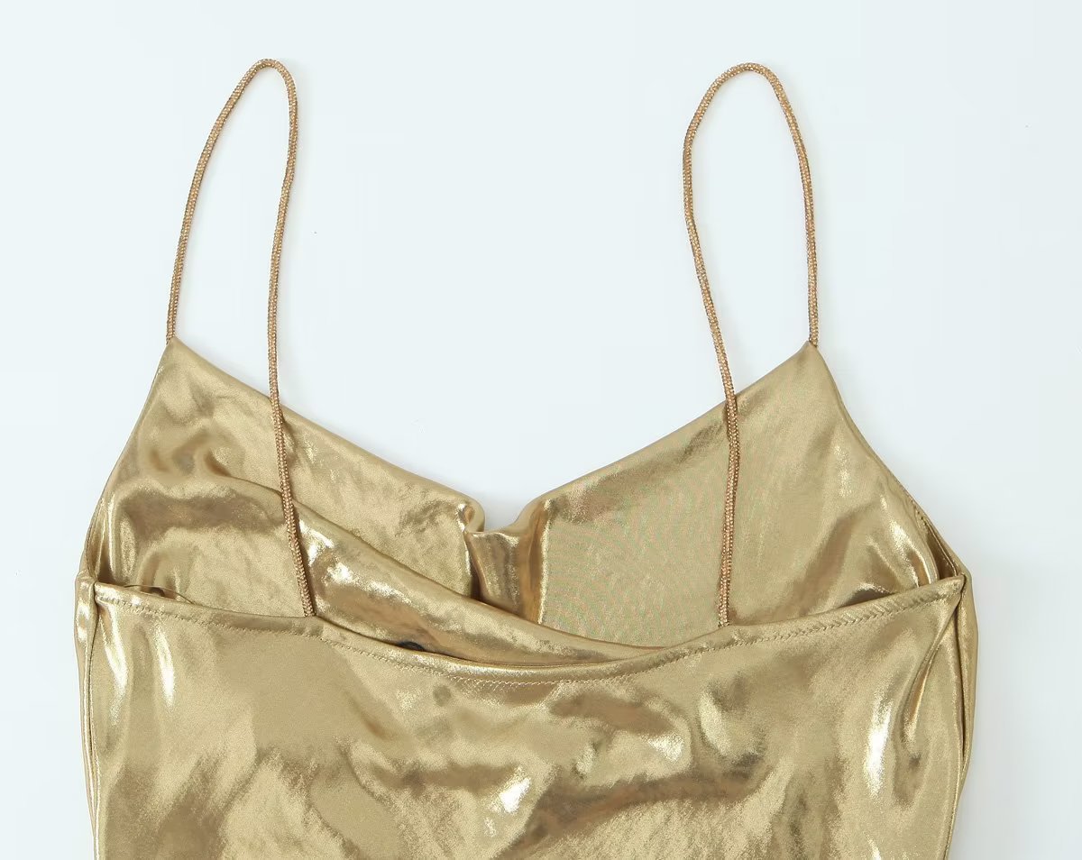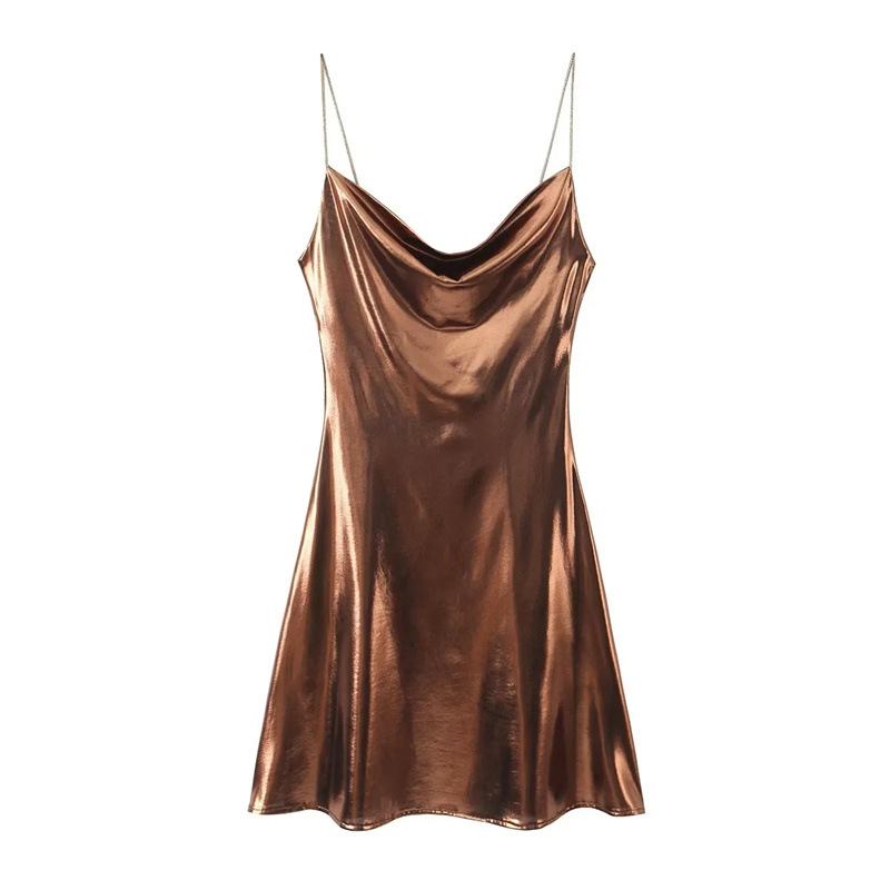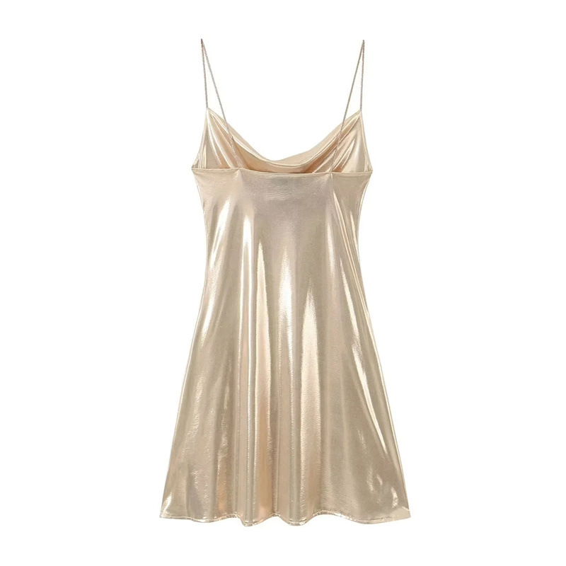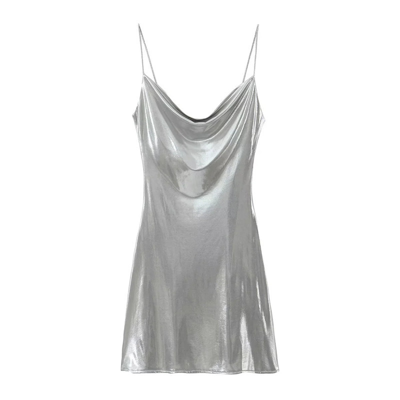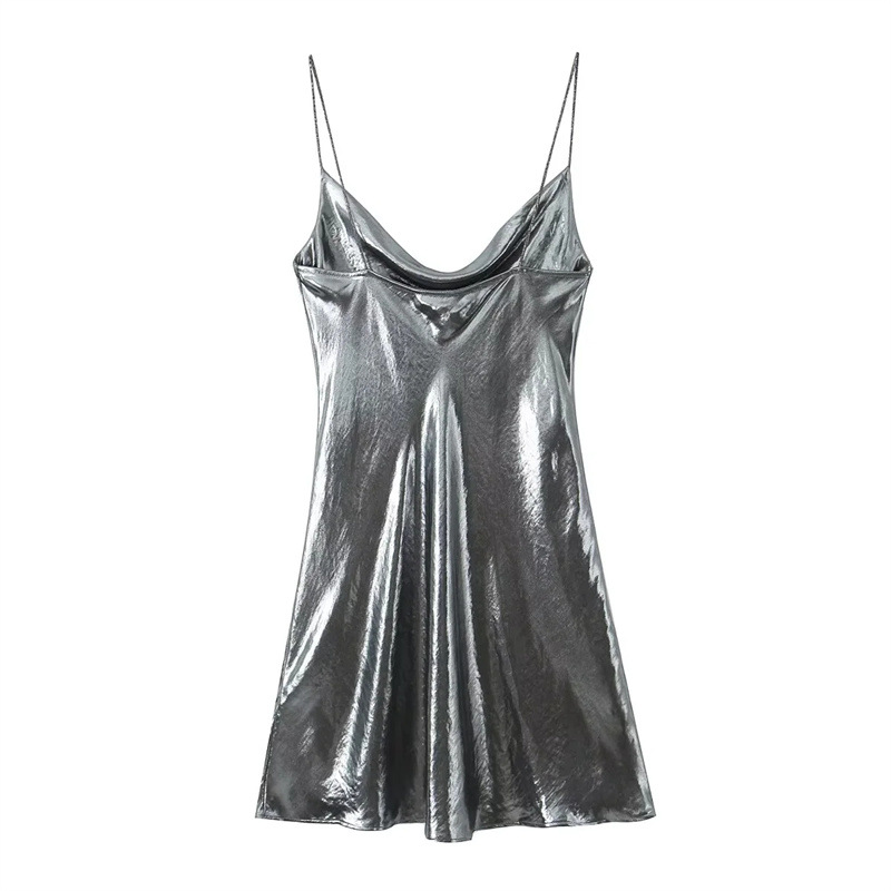 European And American Fashion Low Collar Backless Metallic Sling Dress