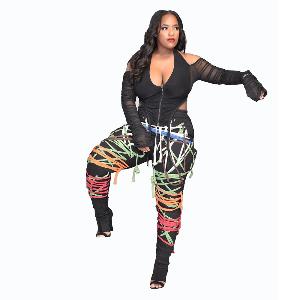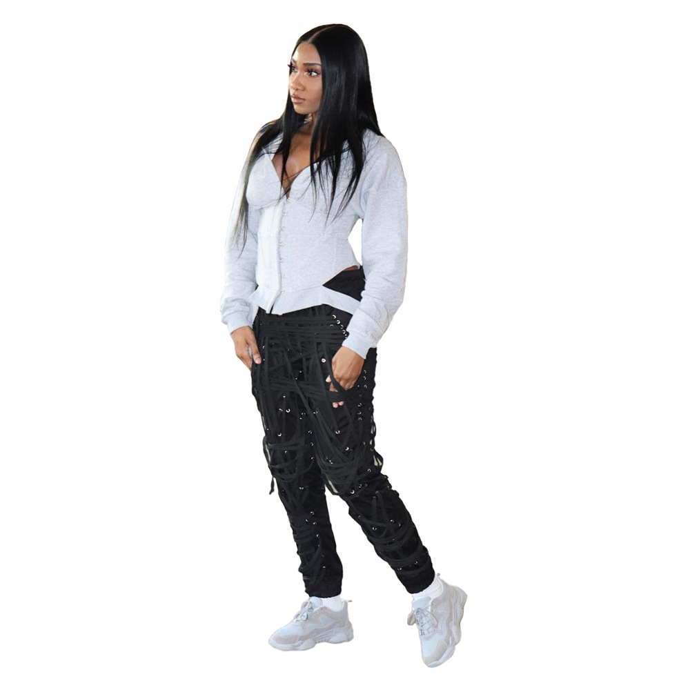 European And American Fashion Women'S Fashion Dark Belt Pants