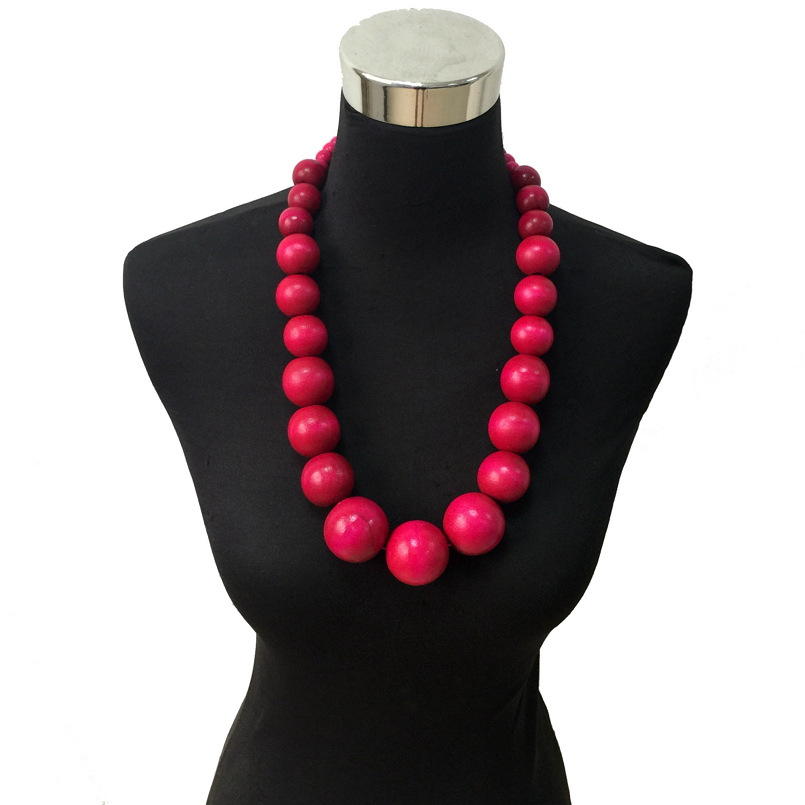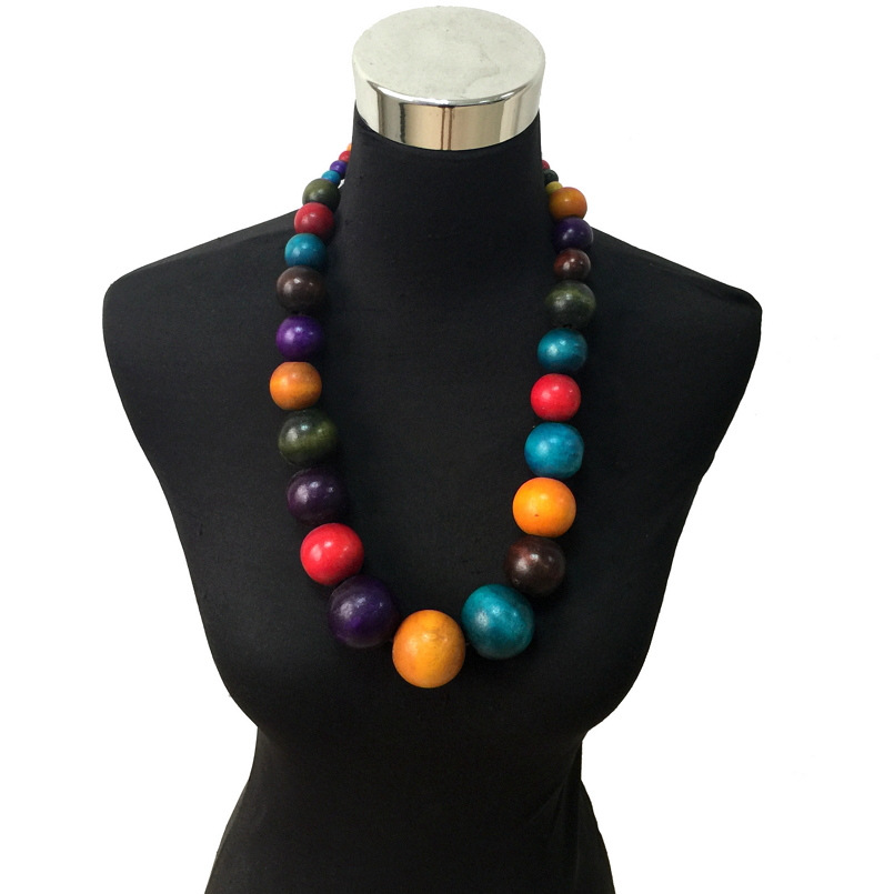 European And American Fashion Wooden Bead Long Necklace Bohemian Women's Colorful Large Beaded Pendant Necklace