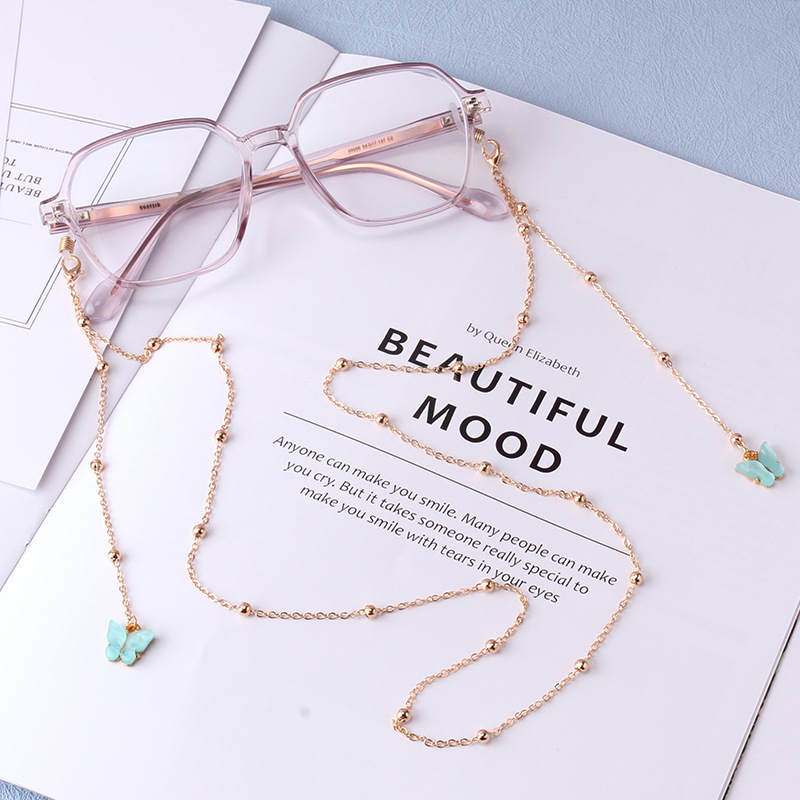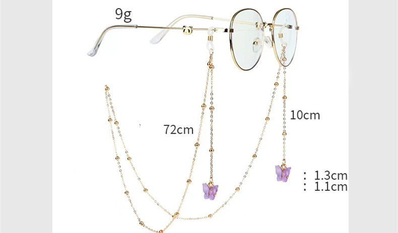 Color: white acrylic butterfly glasses chain mask chain, black acrylic butterfly glasses chain mask chain, pink acrylic butterfly glasses chain mask chain, sky blue acrylic butterfly glasses chain mask chain, red acrylic butterfly glasses chain mask chain, yellow acrylic butterfly glasses chain mask chain, Purple acrylic butterfly glasses chain mask chain, green acrylic butterfly glasses chain mask chain