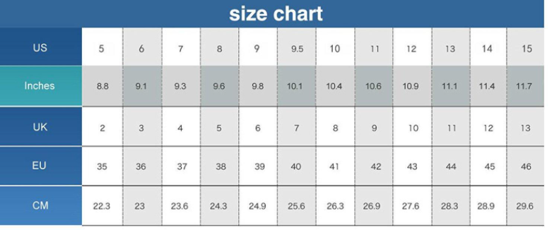 Size: 34, 35, 36, 37, 38, 39, 40, 41, 42, 43, 44, 45