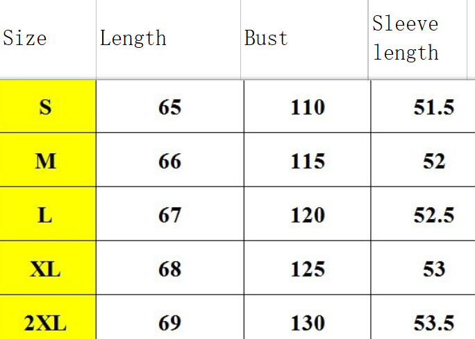 Size:S,M,L,XL,2XL,3XL unit:cm