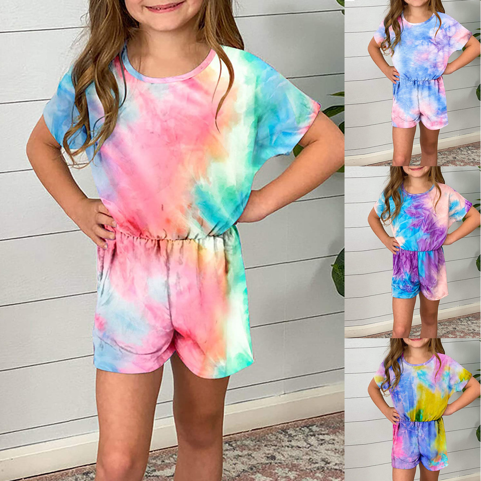 European And American Girls Tie-dye Round Neck Jumpsuit Women