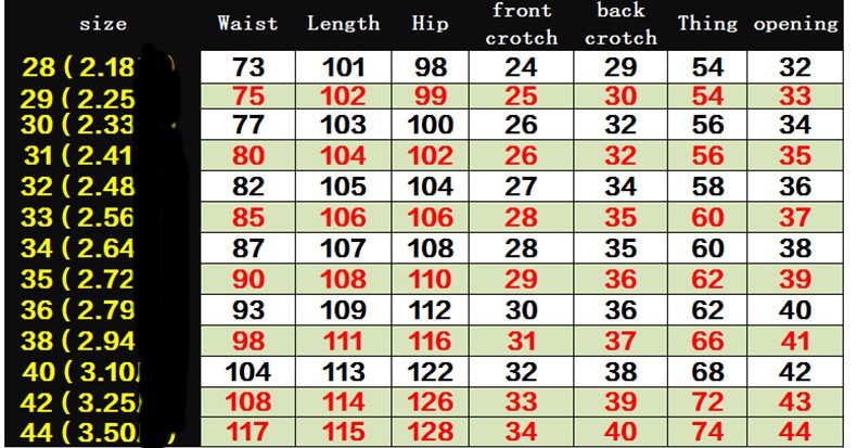 Size: 28, 29, 30, 31, 32, 33, 34, 35, 36, 38, 40