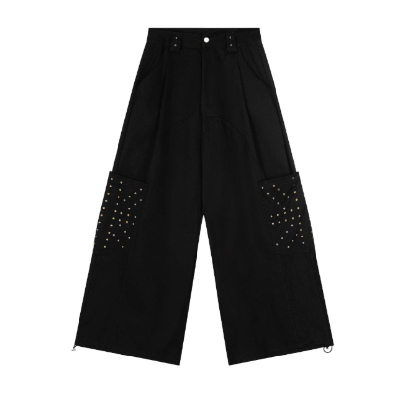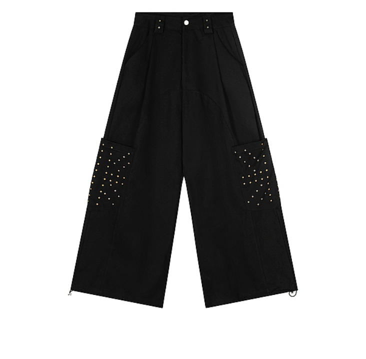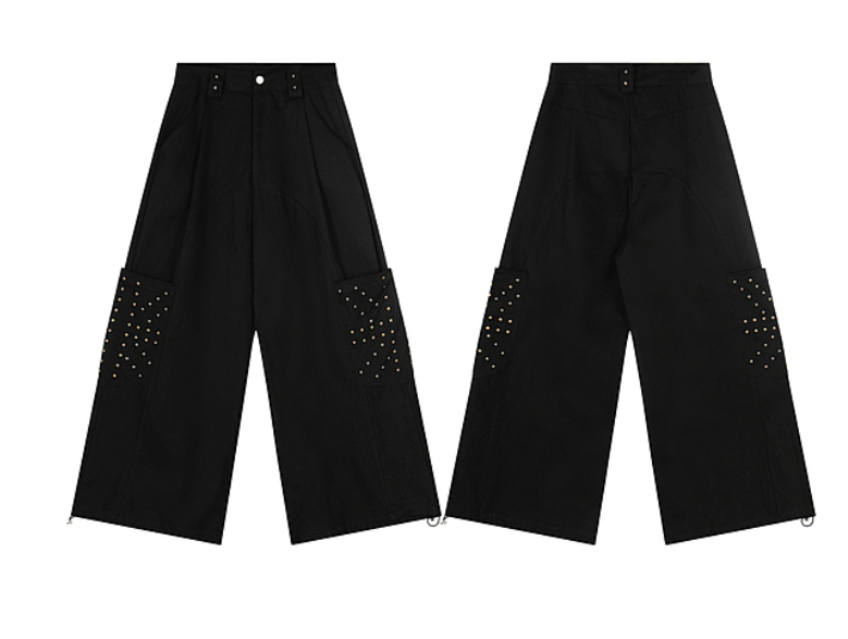 European And American High Street Geometric Pattern Rivet Design Sports Pants