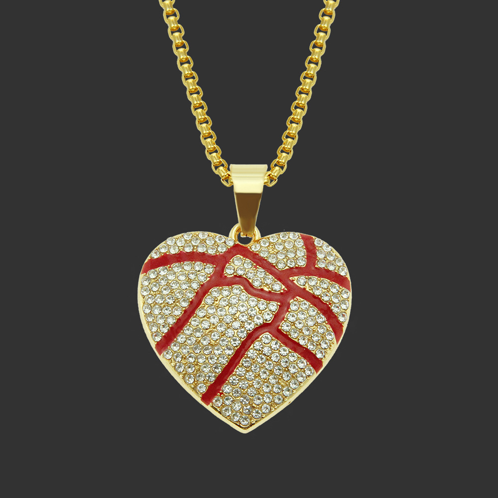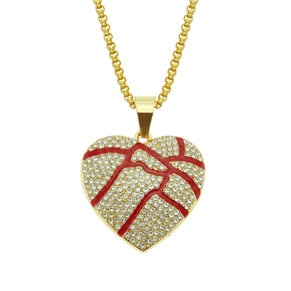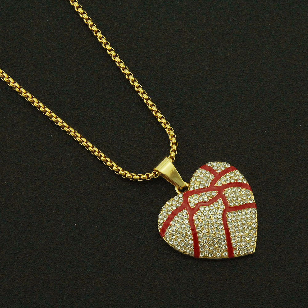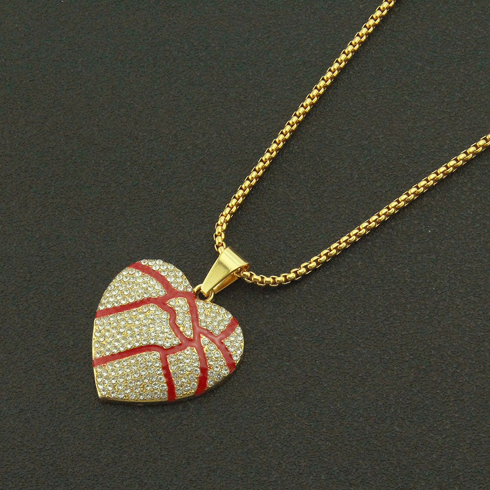 European And American Hip-hop Broken Love Heart-shaped Pendant Full Of Bursting Pulp Red Oil Texture Men's And Women's Couple Necklace