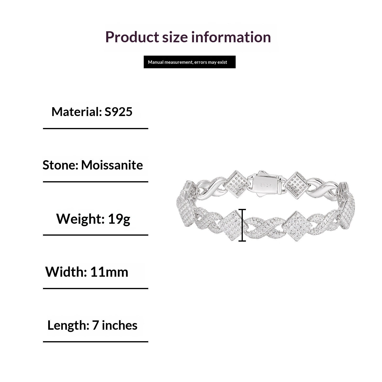 Size Options: Bracelet 6 inches, Bracelet 7 inches, Bracelet 8 inches