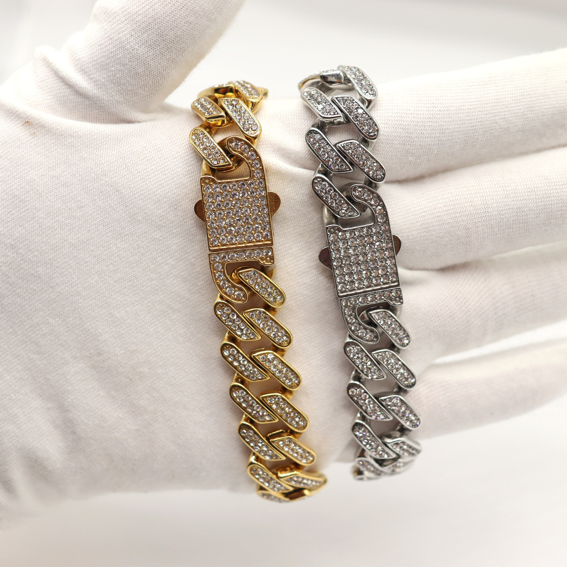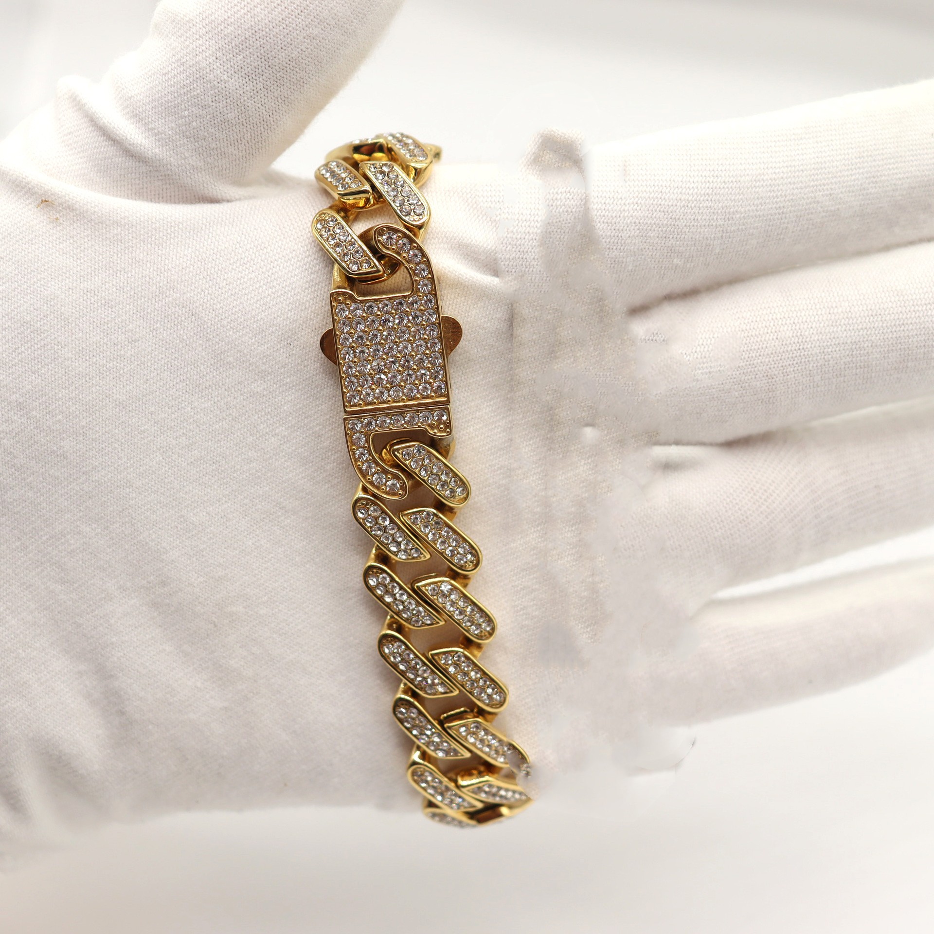 European And American Hip-hop Full Diamond Cuban Chain Titanium Steel Necklace