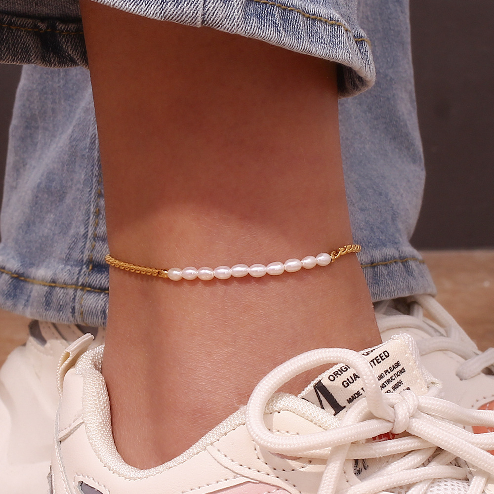 European And American Ins Fashion Special-interest Stitching Freshwater Pearl Anklet