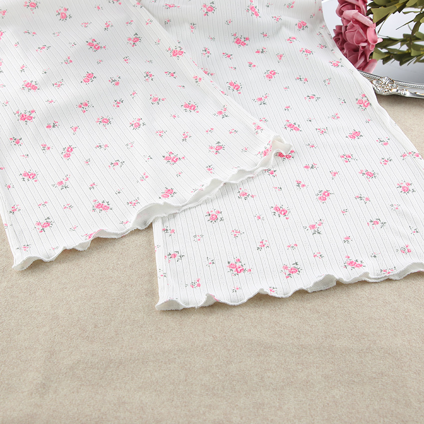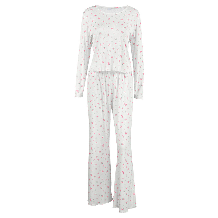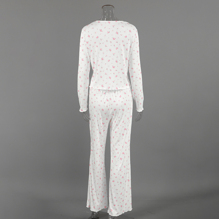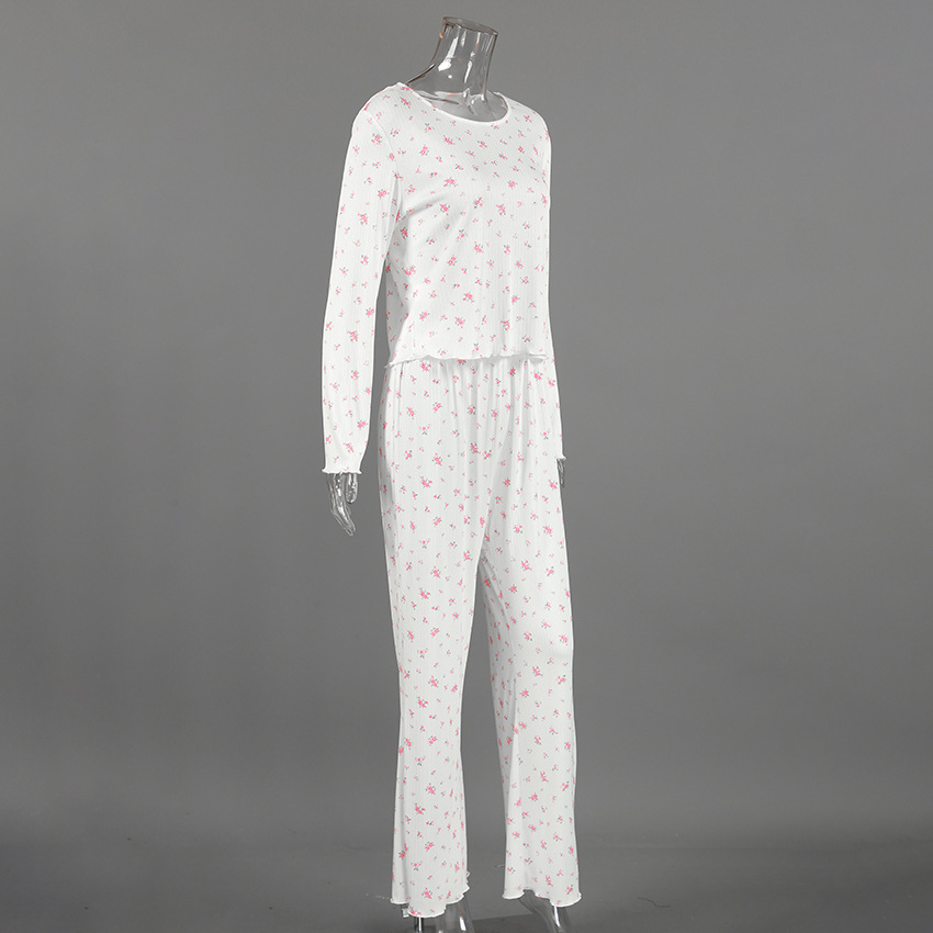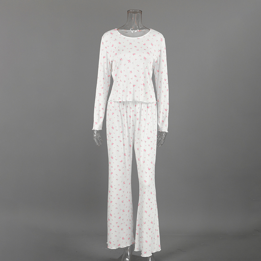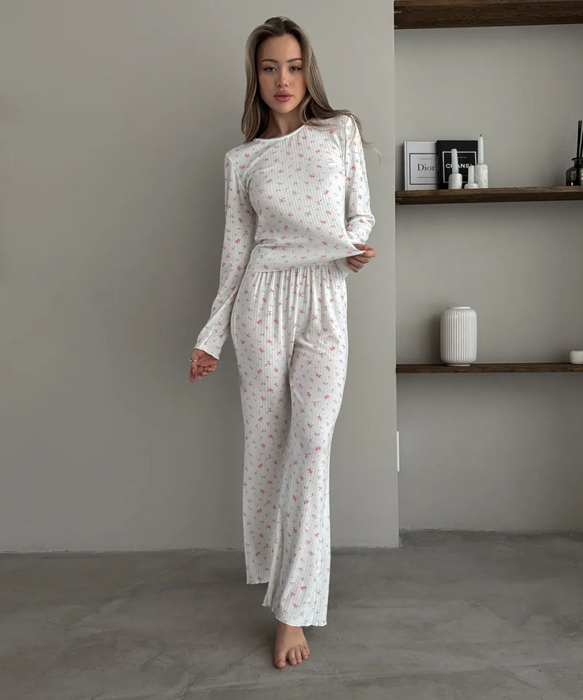 European And American Knitted Jacquard Hollow-out Printed Long-sleeve Pajama Set With Pants