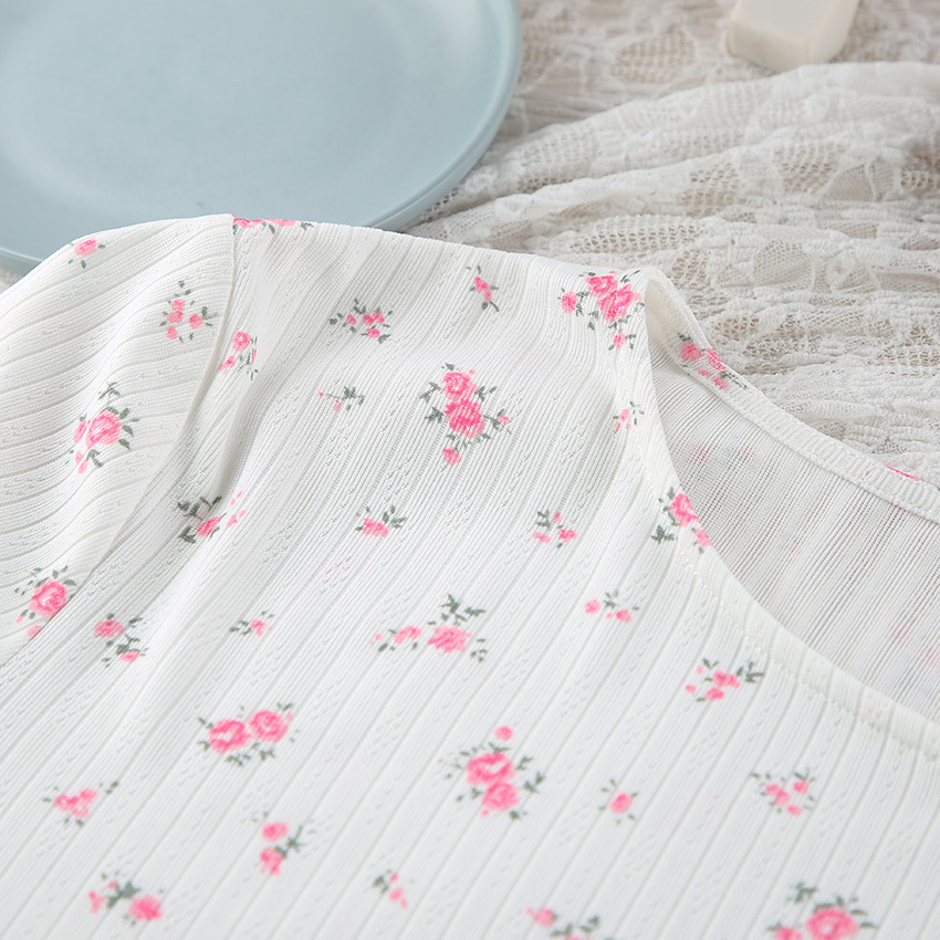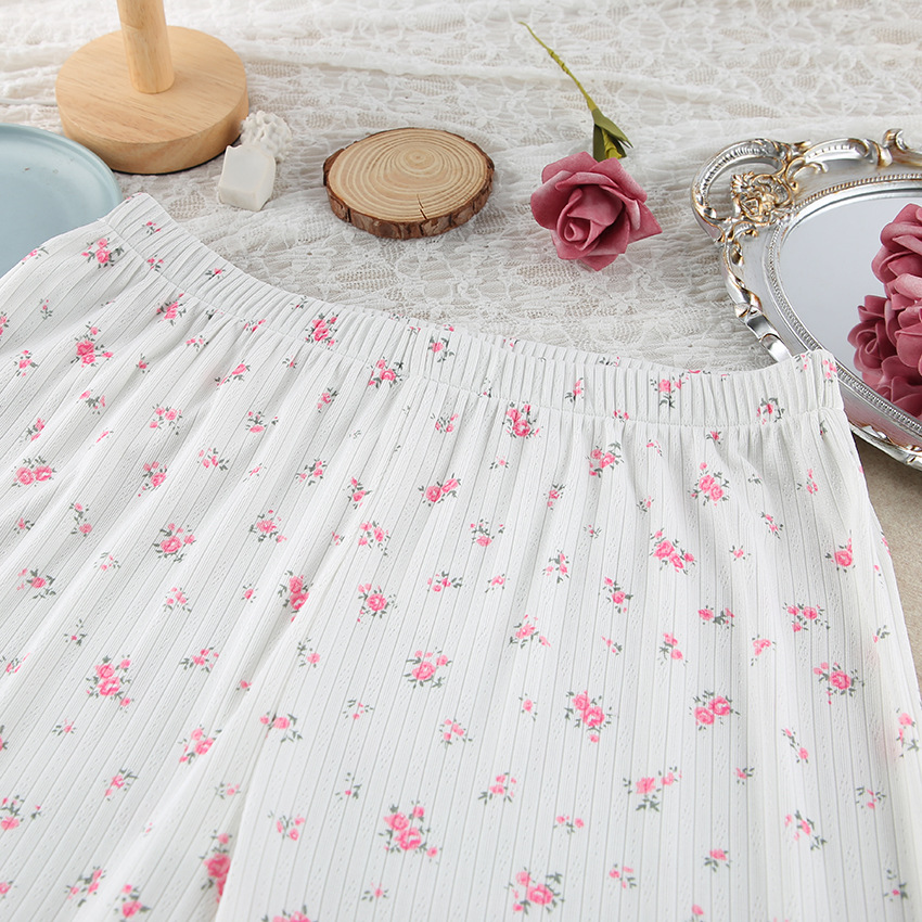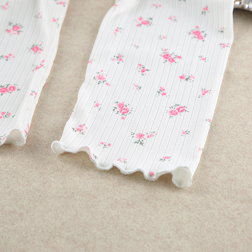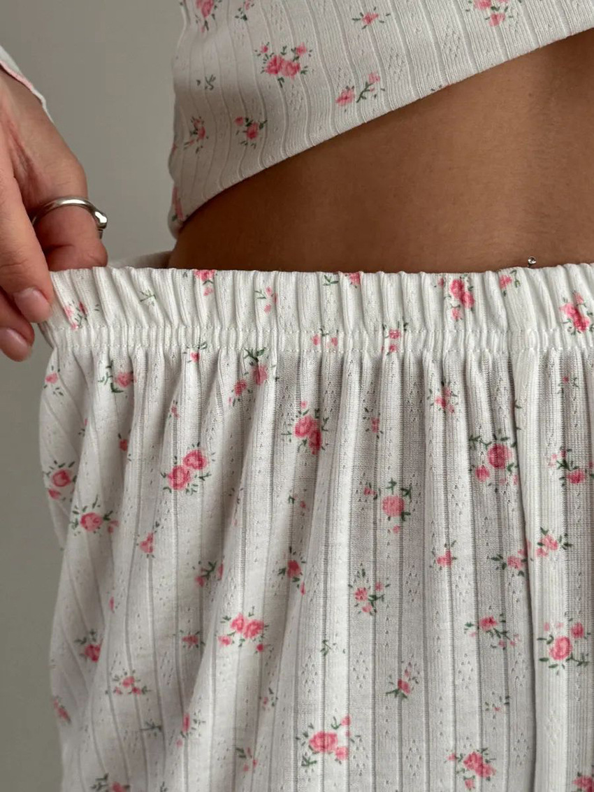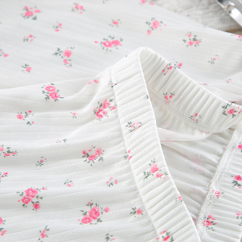 European And American Knitted Jacquard Hollow-out Printed Long-sleeve Pajama Set With Pants