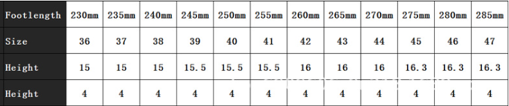 Sizes: 36, 37, 38, 39, 40, 41, 42, 43, 44, 45, 46, 47
