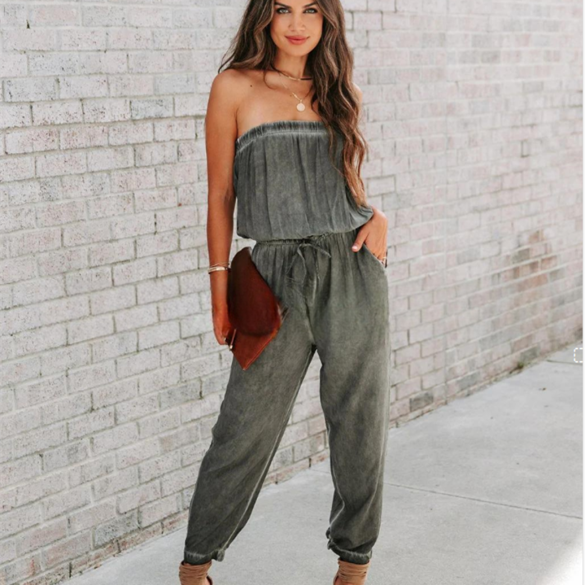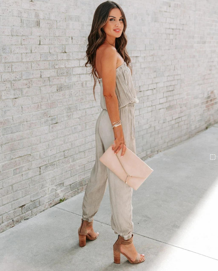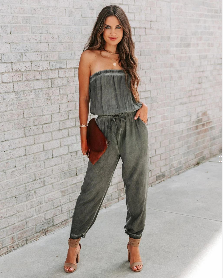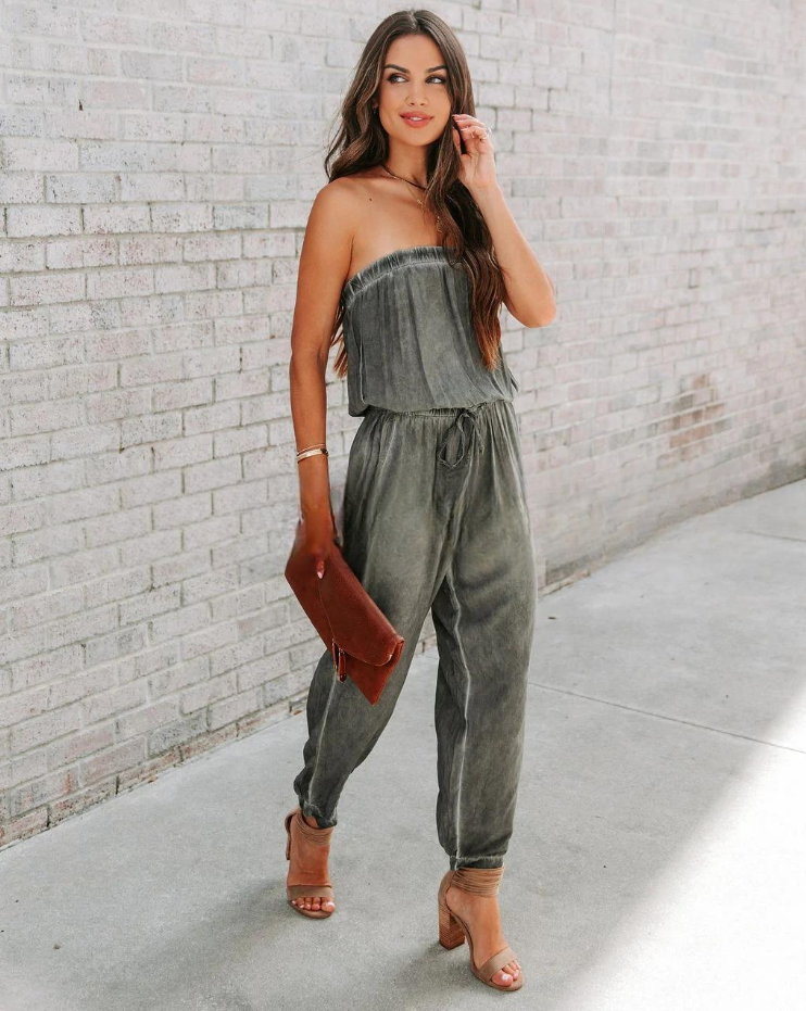 European And American Ladies Bandeau Distressed Lace-up Jumpsuit