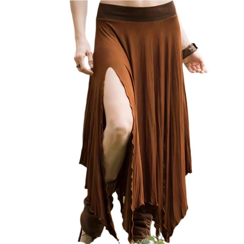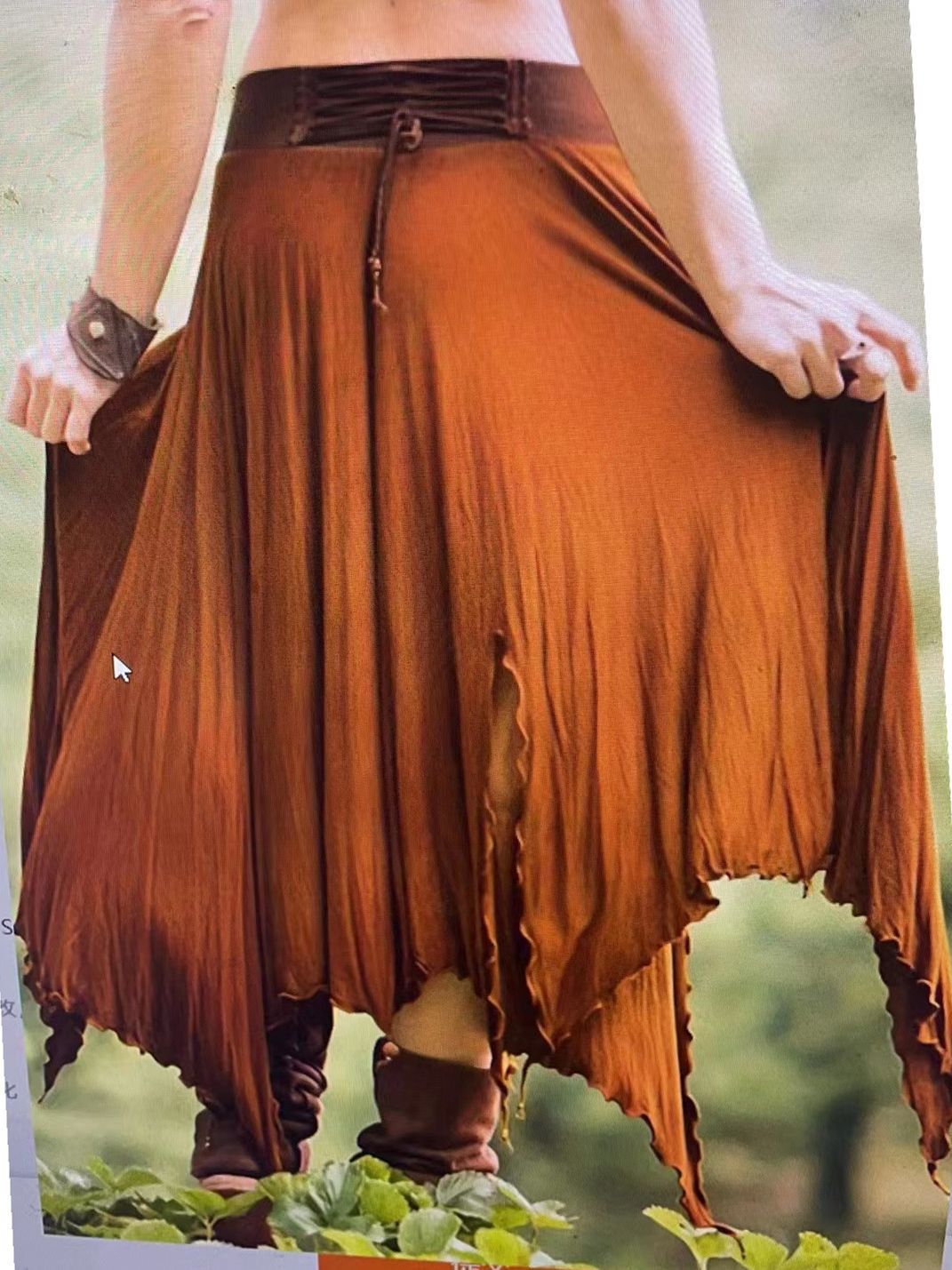 European And American Ladies Retro Fashion Hem Irregular Elastic Waist Color Contrast Patchwork Lace-up Skirt