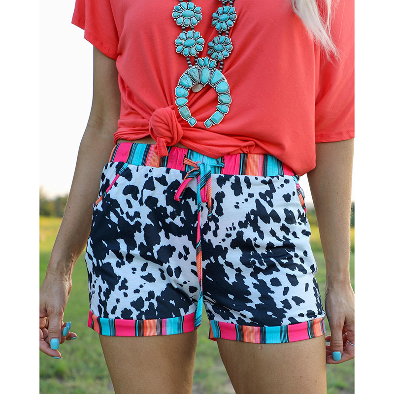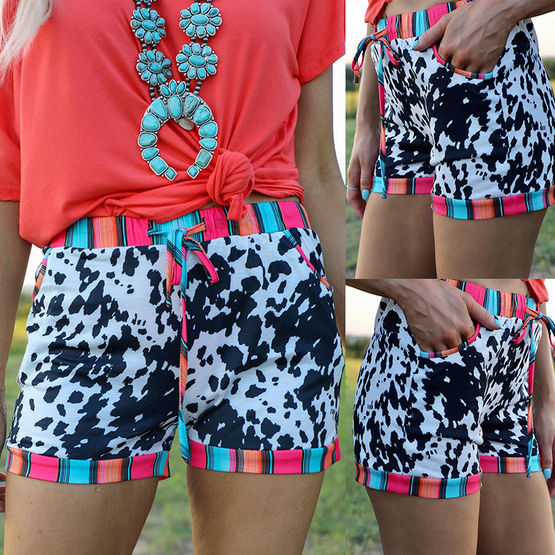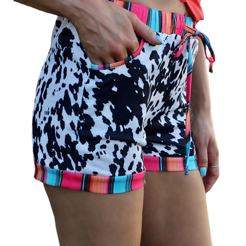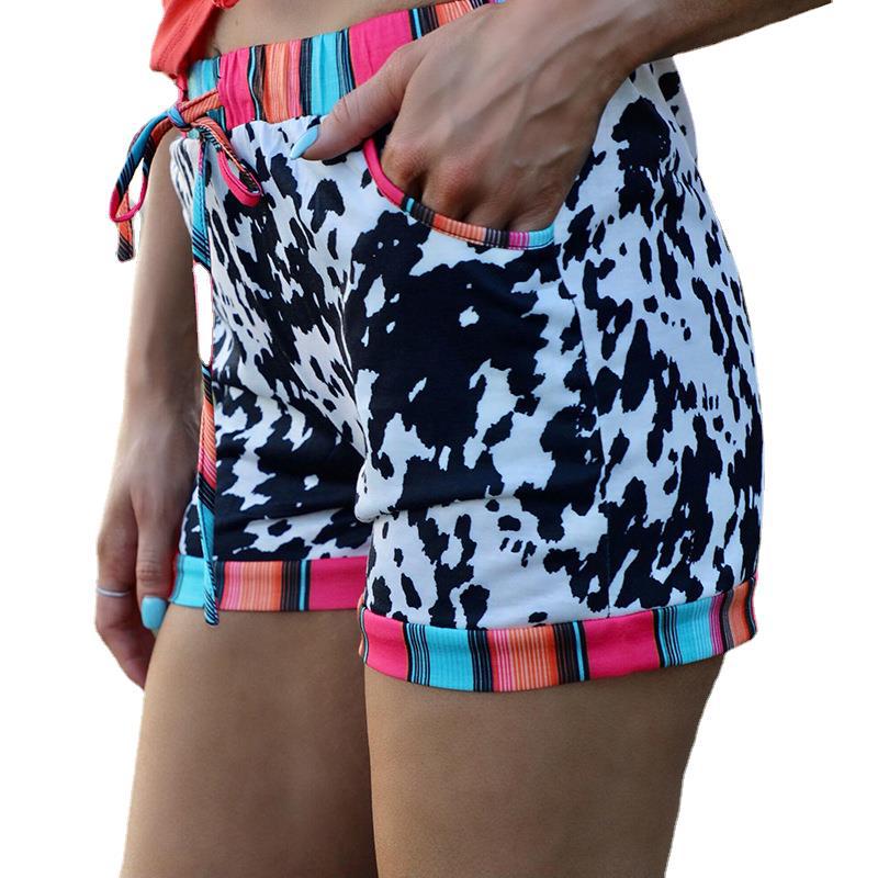 European And American Leopard Print Drawstring Casual Shorts Women