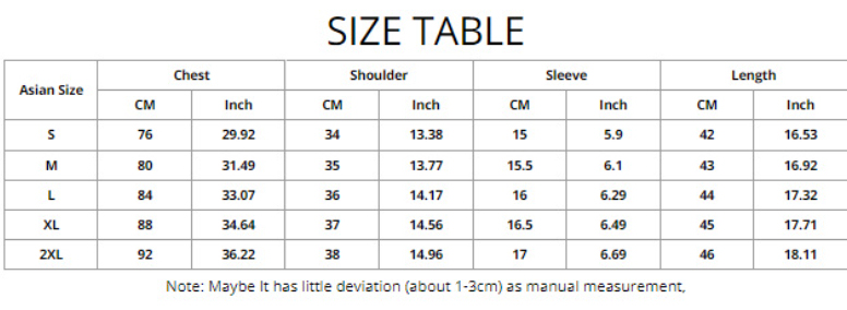 1. Asian sizes are 1 to 2 sizes smaller than European and American people. Choose the larger size if your size between two sizes. Please allow 2-3cm differences due to manual measurement. 2. Please check the size chart carefully before you buy the item, if you don't know how to choose size, please contact our customer service. 3.As you know, the different computers display colors differently, the color of the actual item may vary slightly from the following images.
