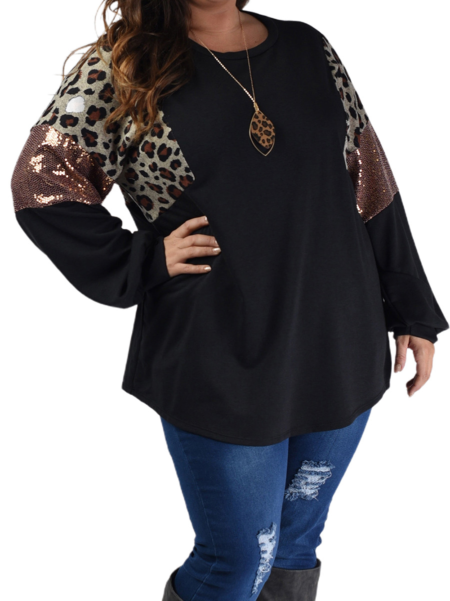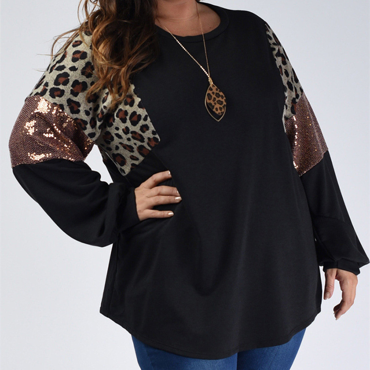 European And American Loose Slim Fit Leopard Print Long Sleeve