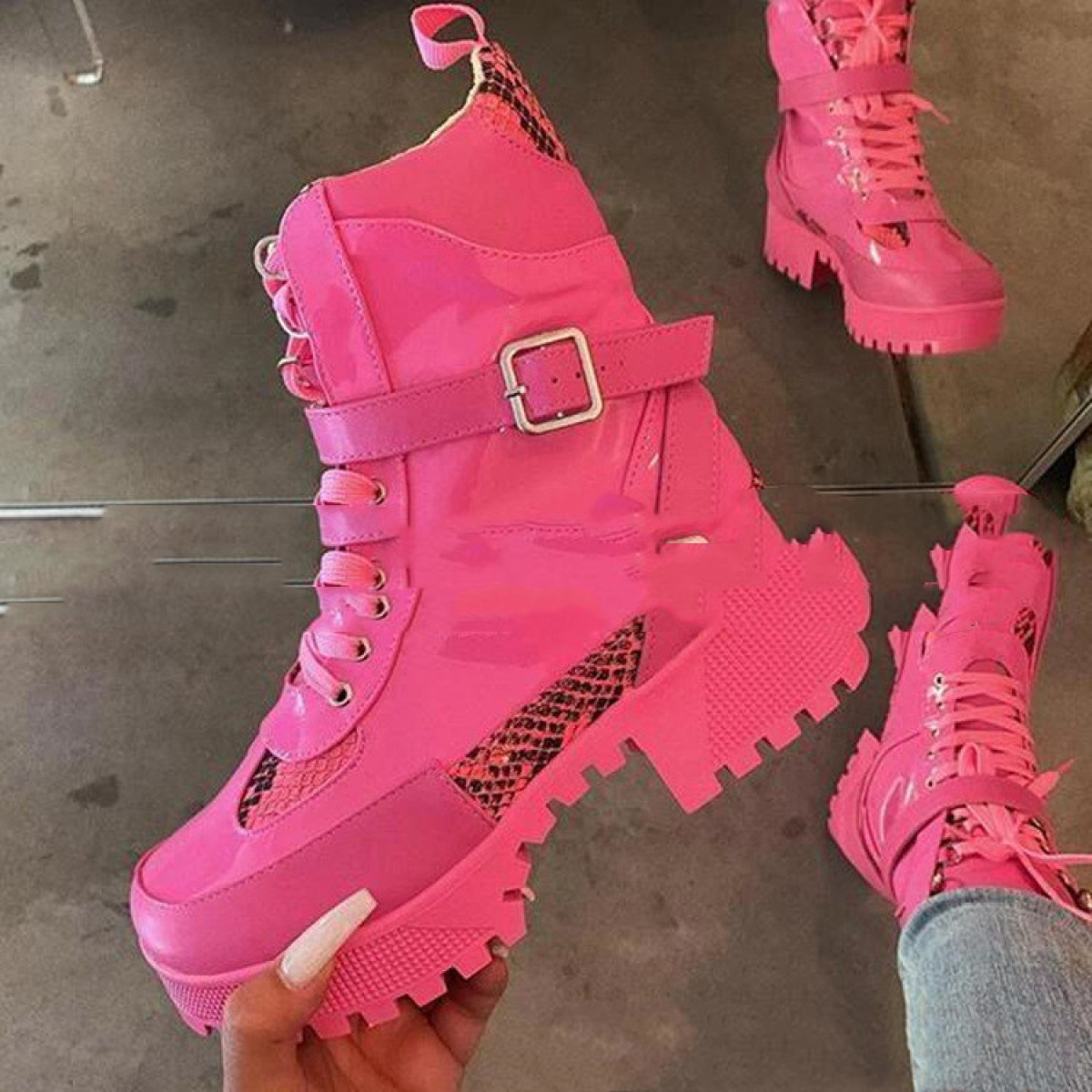 European And American Martin Boots Belt Buckle Thick Heel
