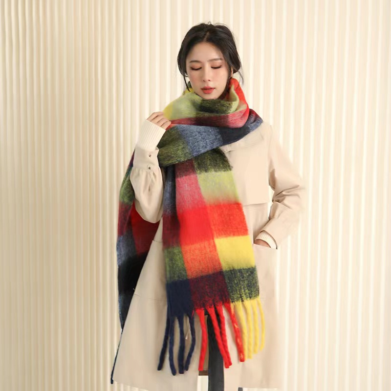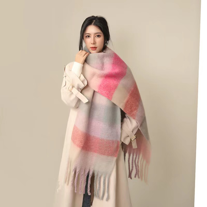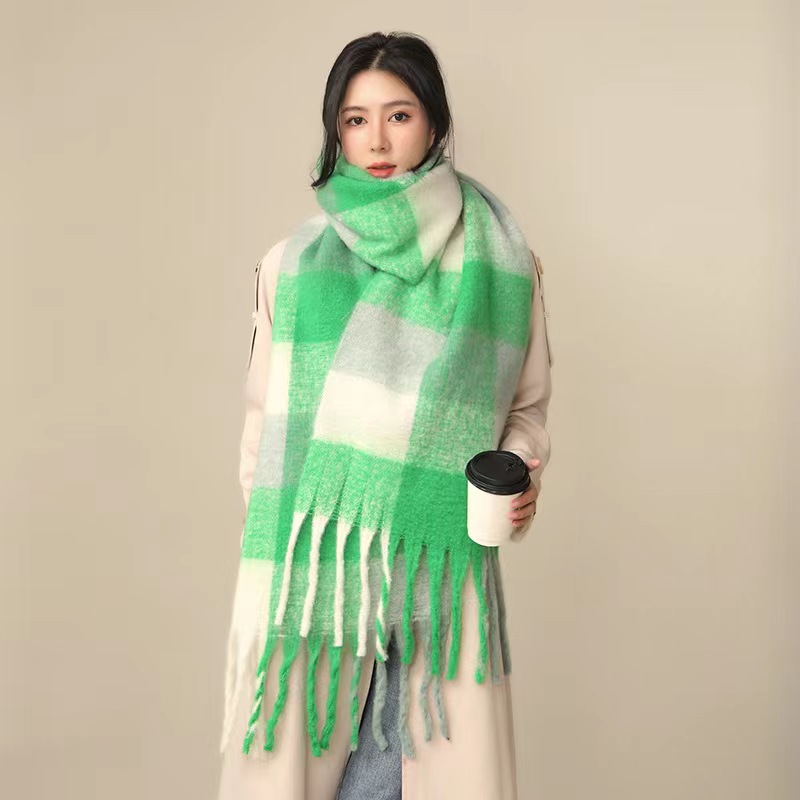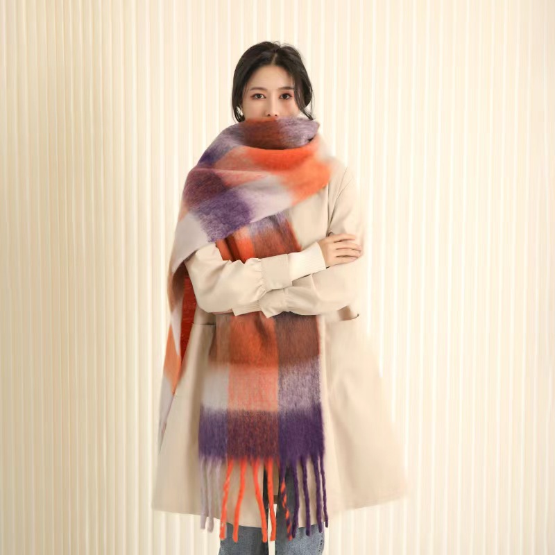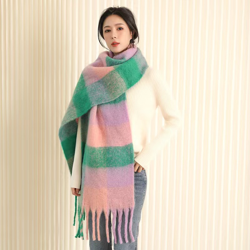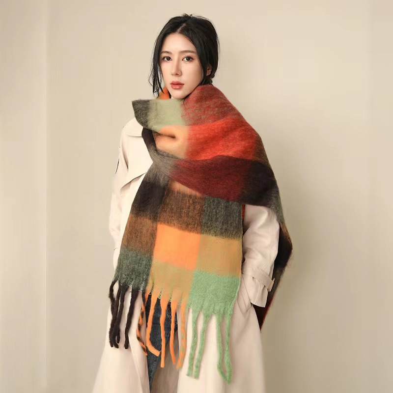 European And American Mohair Plush Warm Leisure Versatile Lattice Scarf
