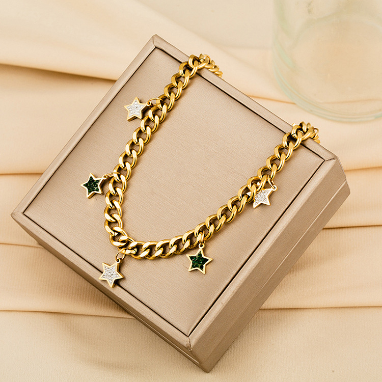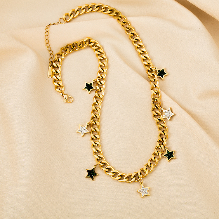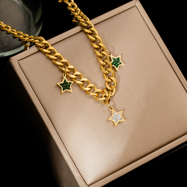 European And American New Color Full Diamond Three-dimensional Five-pointed Star Necklace