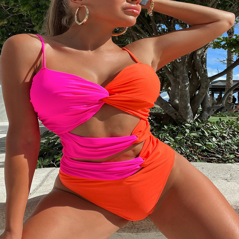 European And American New Contrast Color One-piece Swimsuit