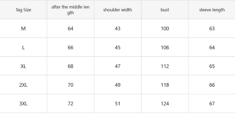 Size: M, L, XL, 2XL, 3XL
