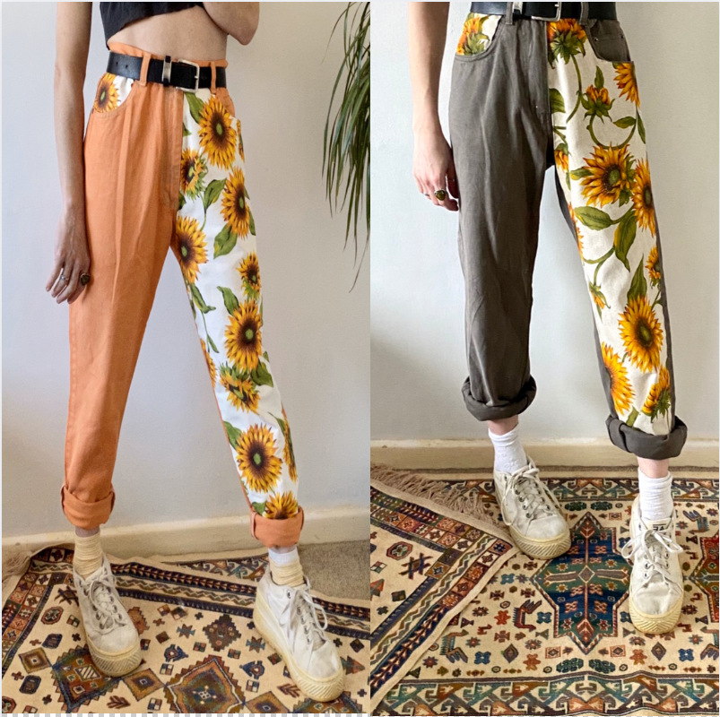European And American New Style Casual Print Stitching Straight Leg Loose Trousers Women