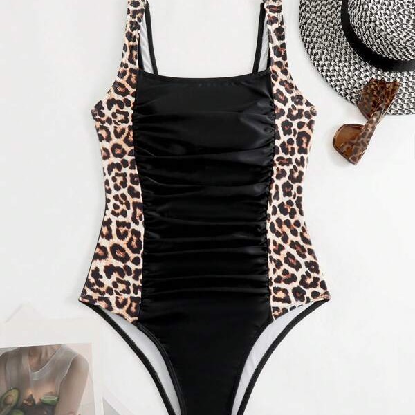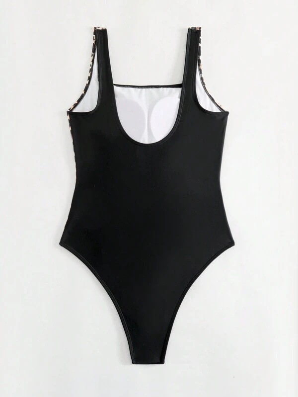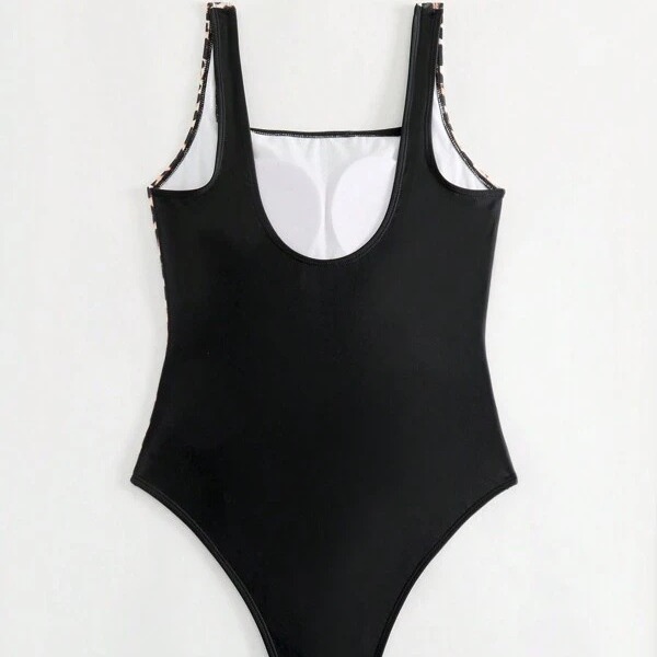 European And American One-piece Swimsuit Solid Color Leopard Print Sling