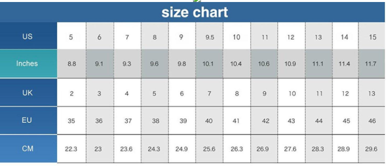Sizes: 34, 35, 36, 37, 38, 39, 40, 41, 42, 43, 44, 45