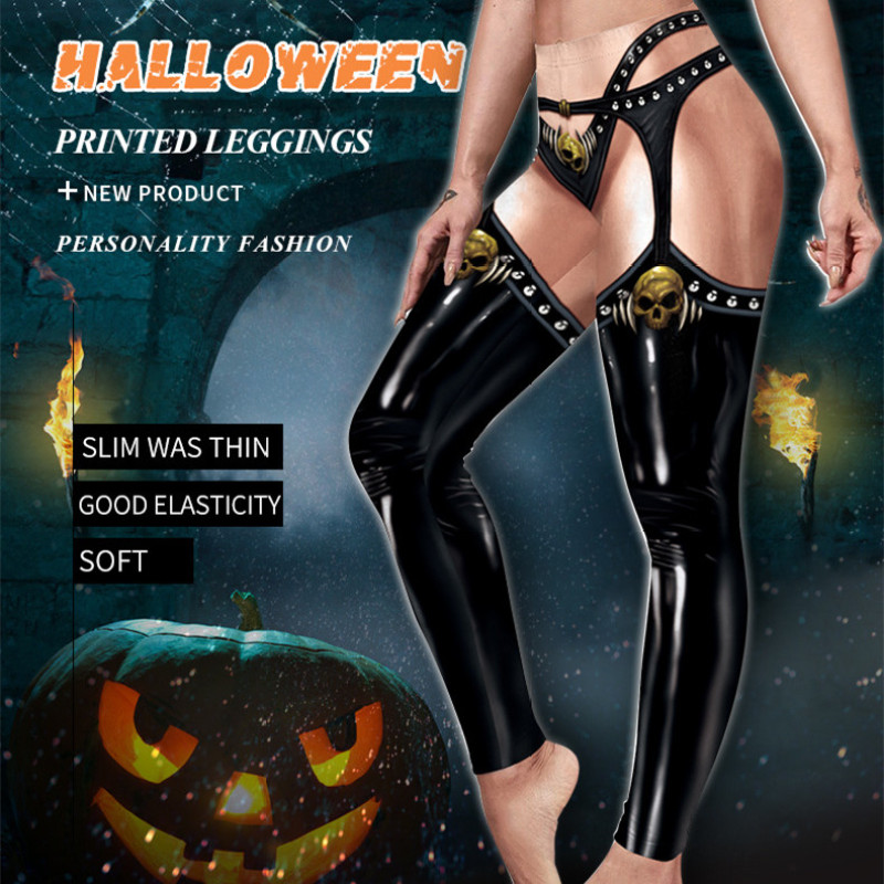 European And American Print Pencil Pants Female Personality Creative Pumpkin