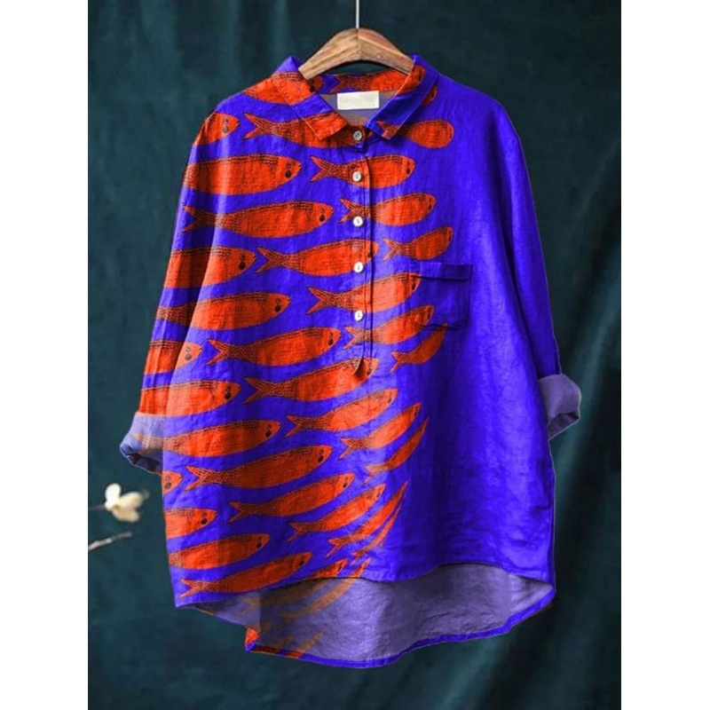 European And American Printed Hawaiian Casual Long-sleeved Shirt