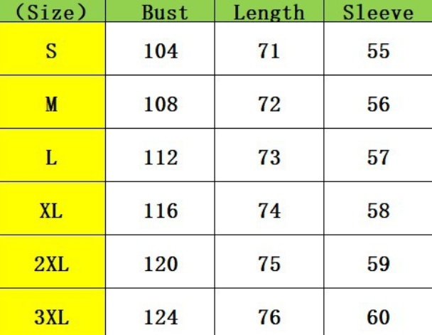 Size:S,M,L,XL,XXL,3XL unit:cm