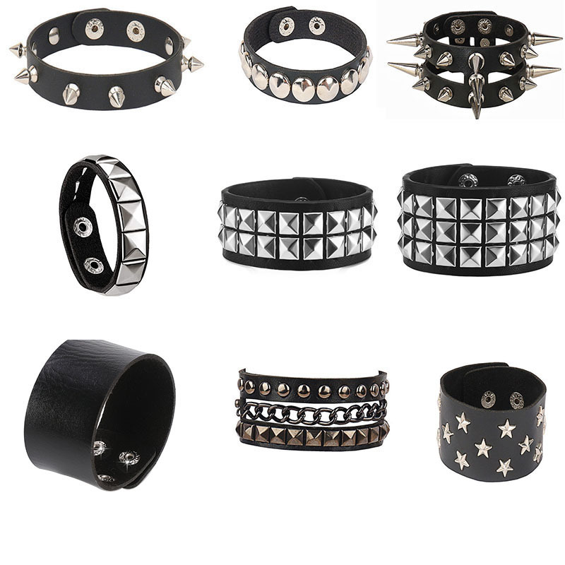 Color: Black one row bracelet, Black two rows bracelet, black three rows bracelet, black, black, black stripes, leather bracelet, black five-pointed star, black cutout