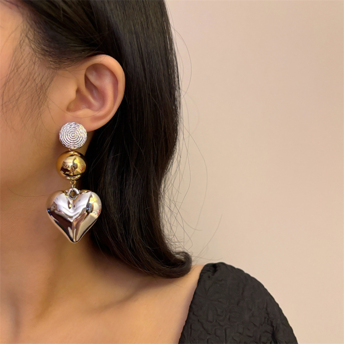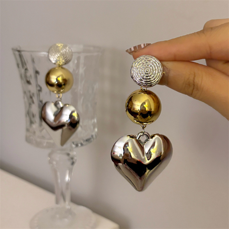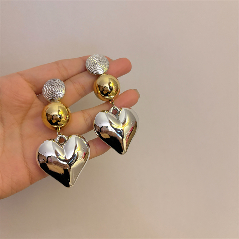 European And American Retro Three-dimensional Big Heart Pendant Earrings