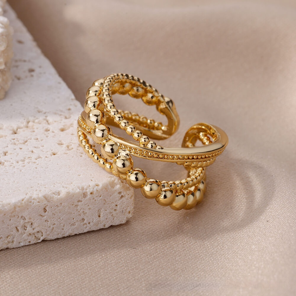 European And American Rose Flower Ring Copper Plating 18K Gold-plated Ring Special Interest Light Luxury Hollow Out