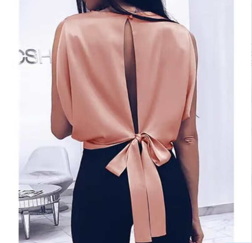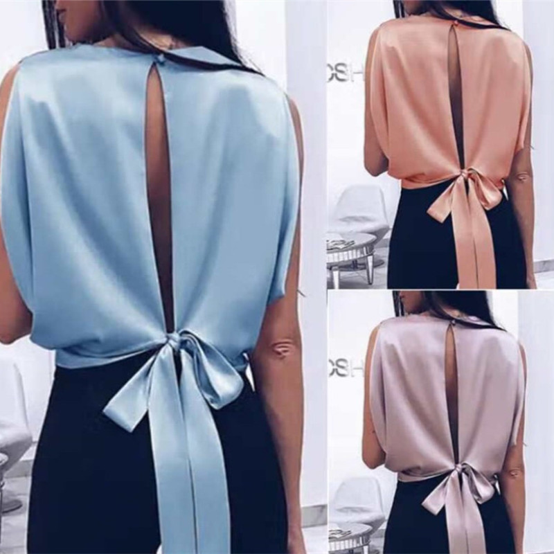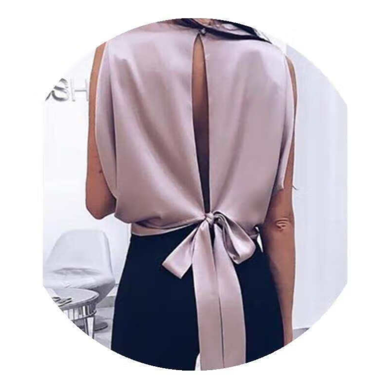 European And American Sexy Backless Tie Back Satin Top Sleeveless