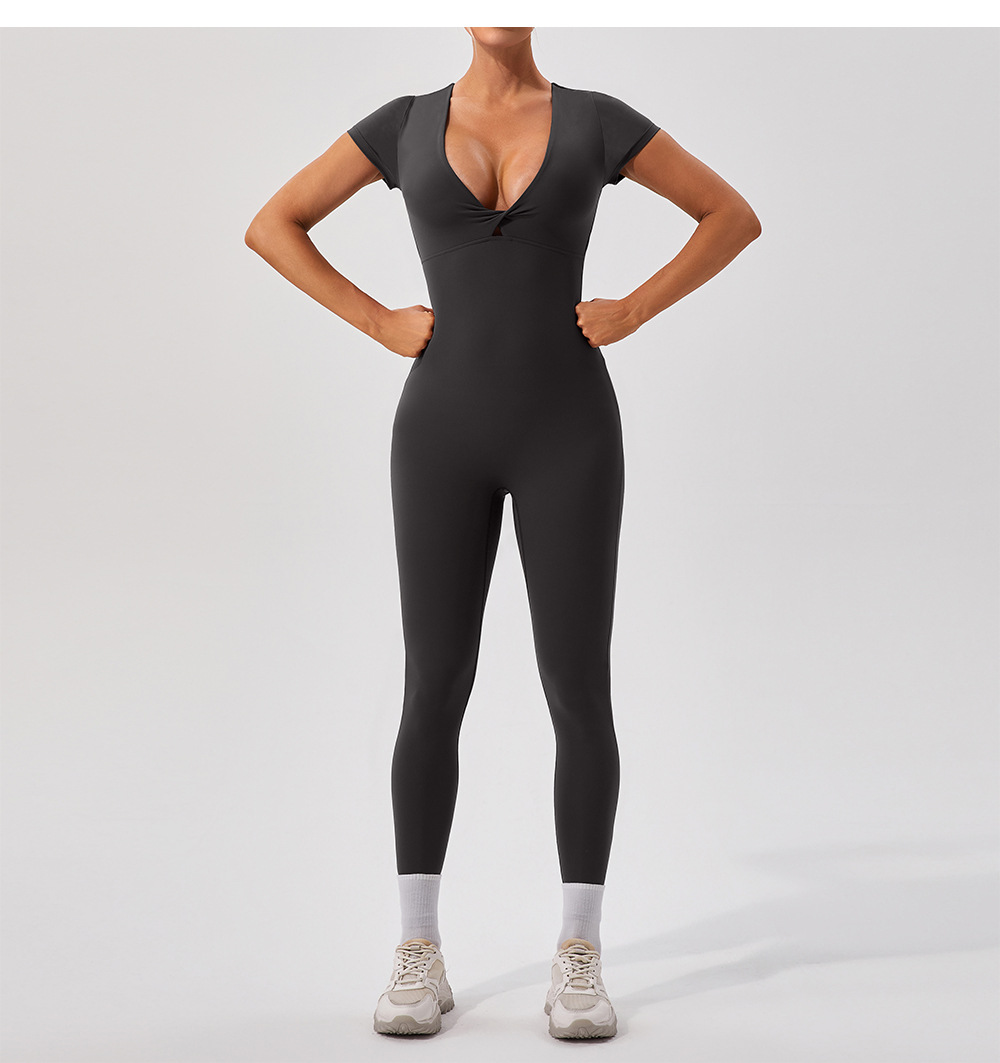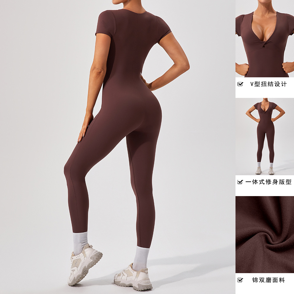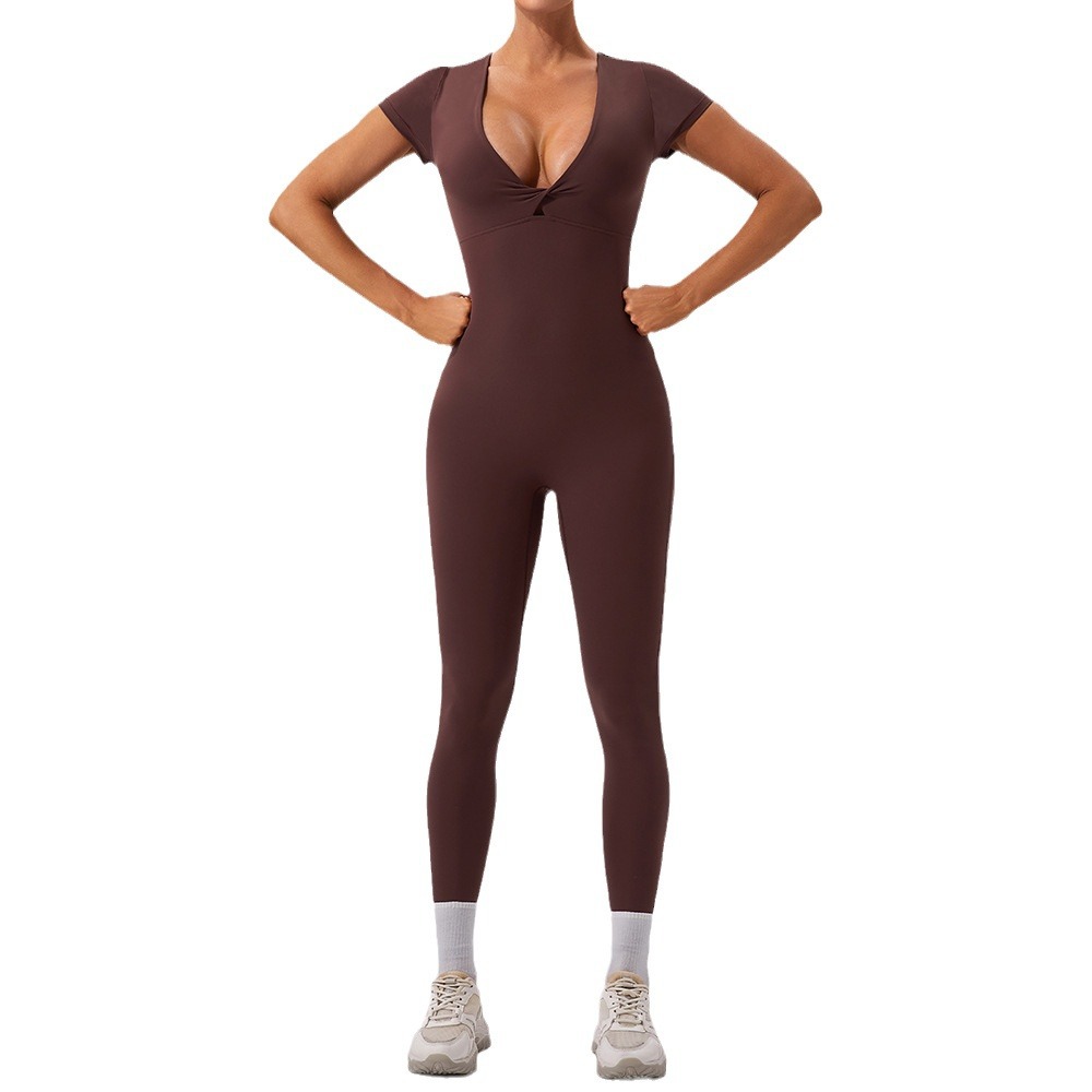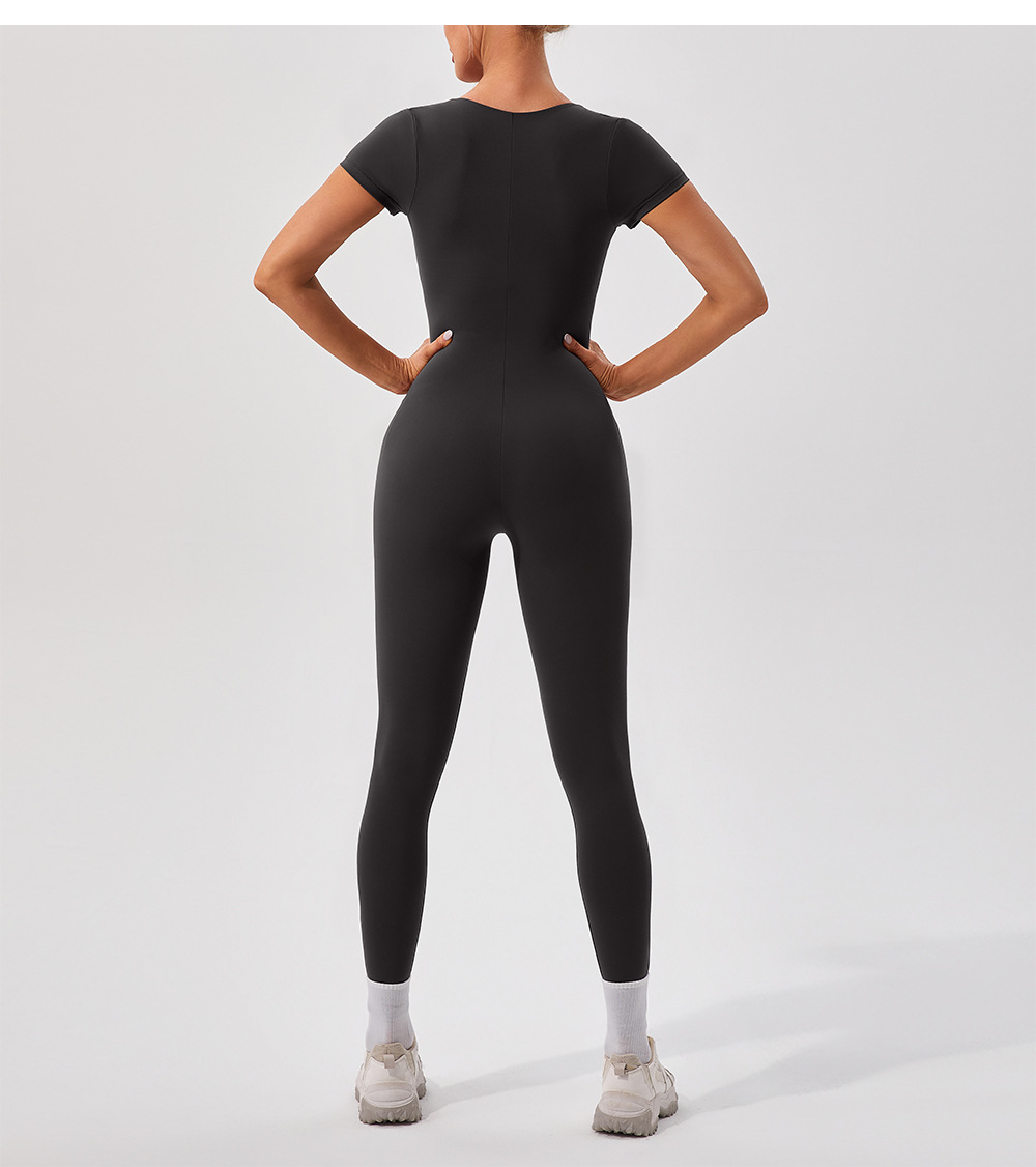 European And American Sexy Nude Feel Short Sleeve Yoga Jumpsuit