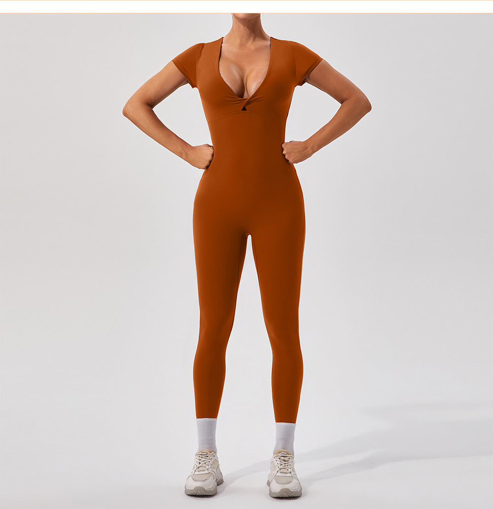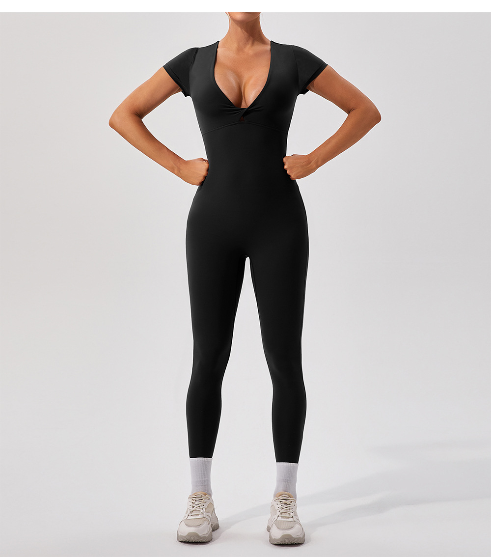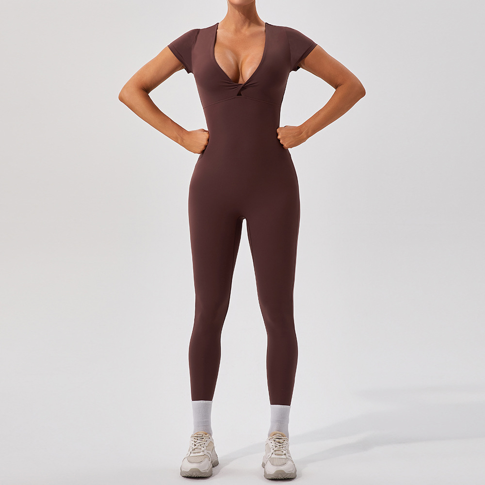 European And American Sexy Nude Feel Short Sleeve Yoga Jumpsuit