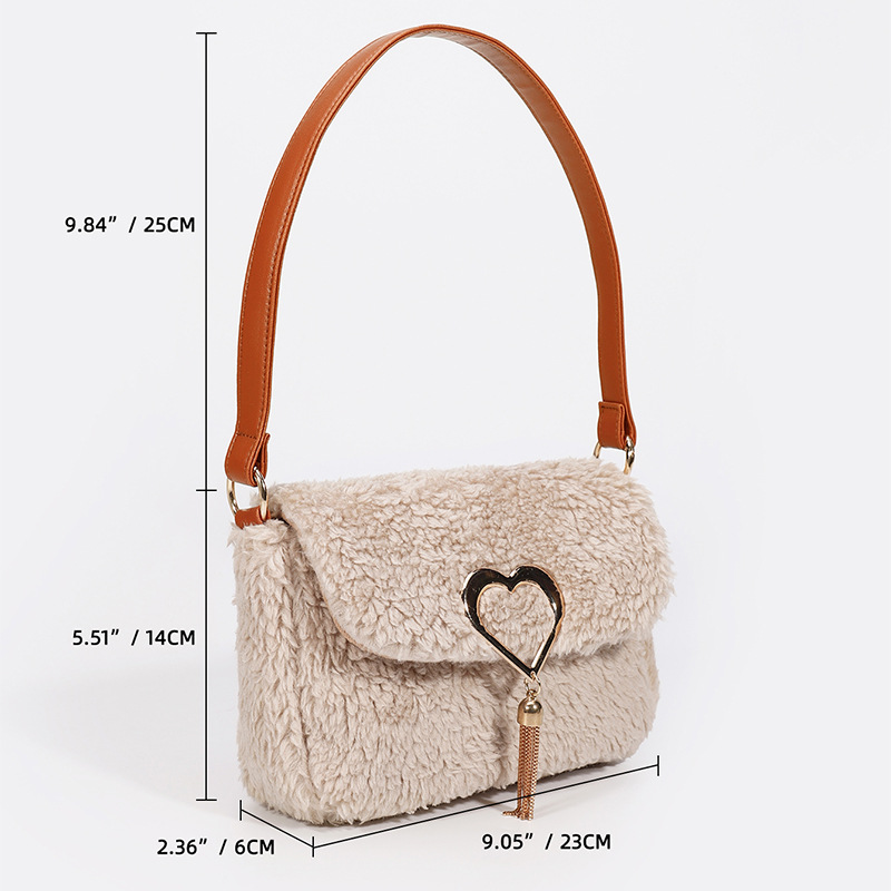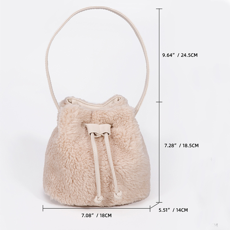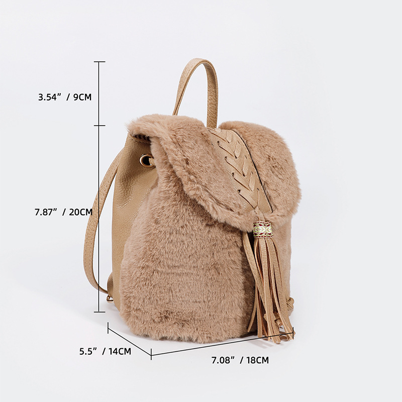 Colors: beige shoulder messenger bag, black shoulder bag, tassel khaki small backpack, Teddy velvet khaki small backpack, beige tassel small backpack, Teddy velvet small backpack beige, apricot purse, brown purse, green purse, apricot shoulder bag, pink handbag, apricot bucket bag, apricot camera bag, pink underarm bag.