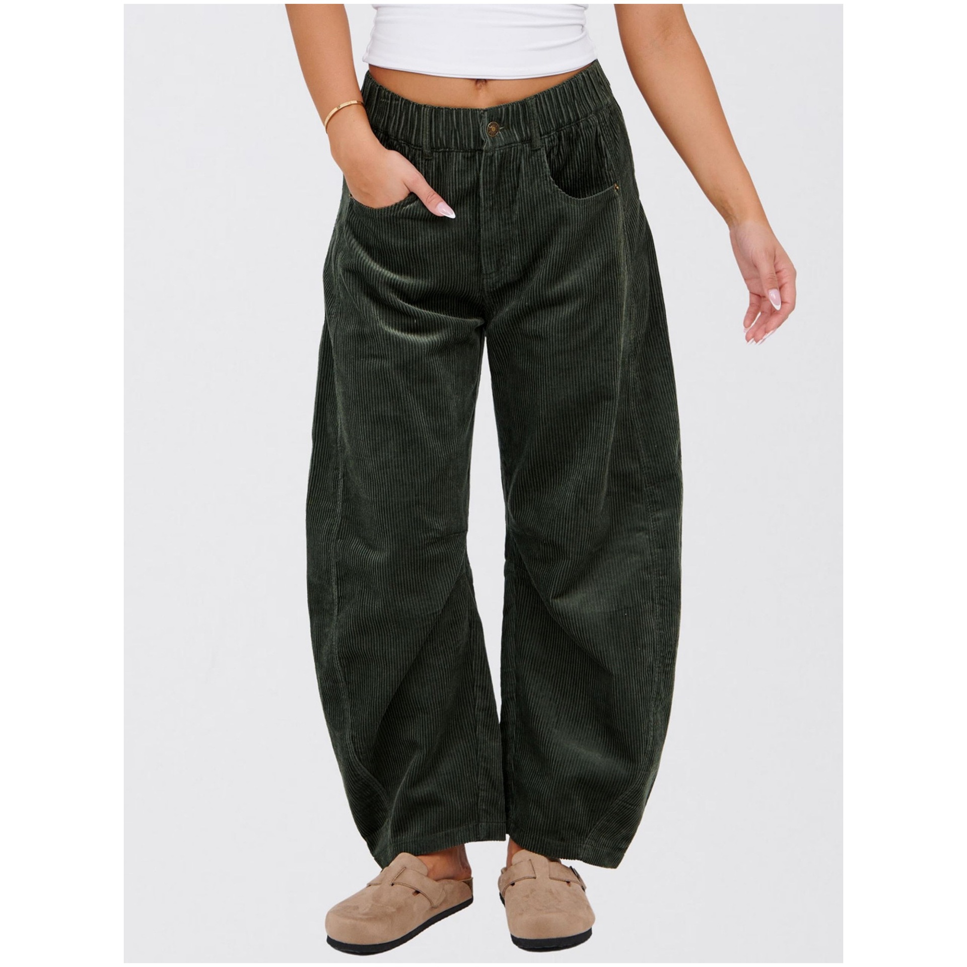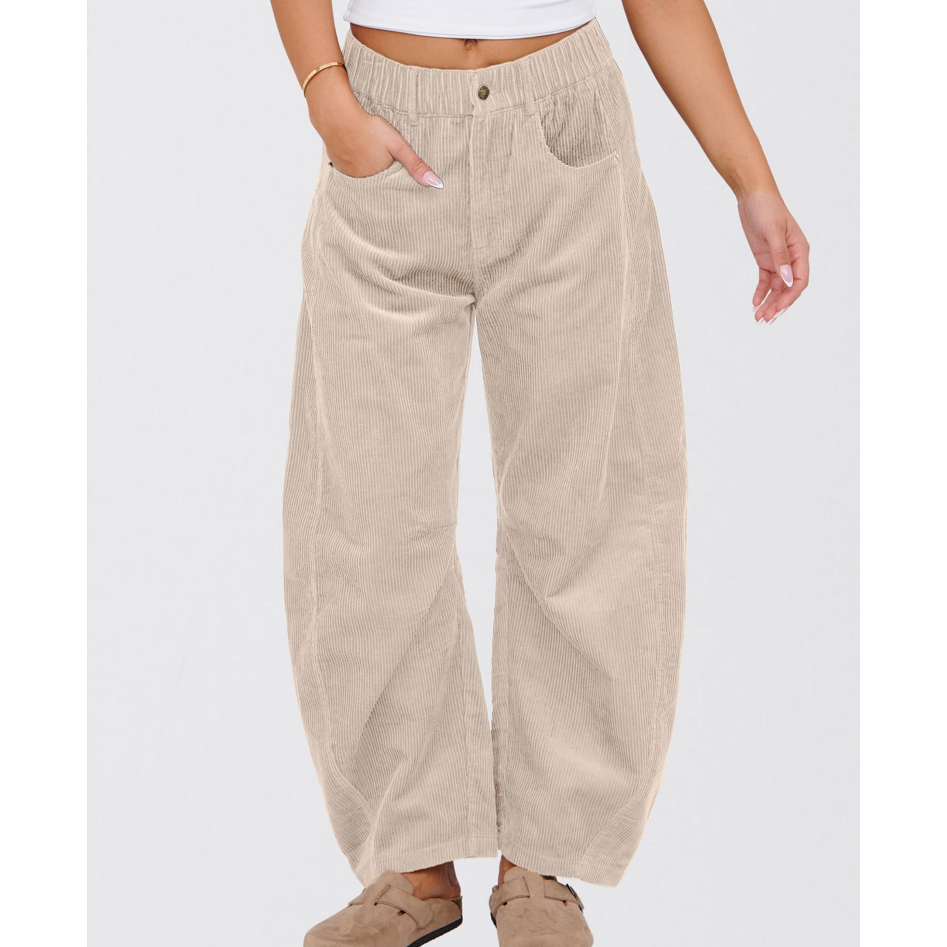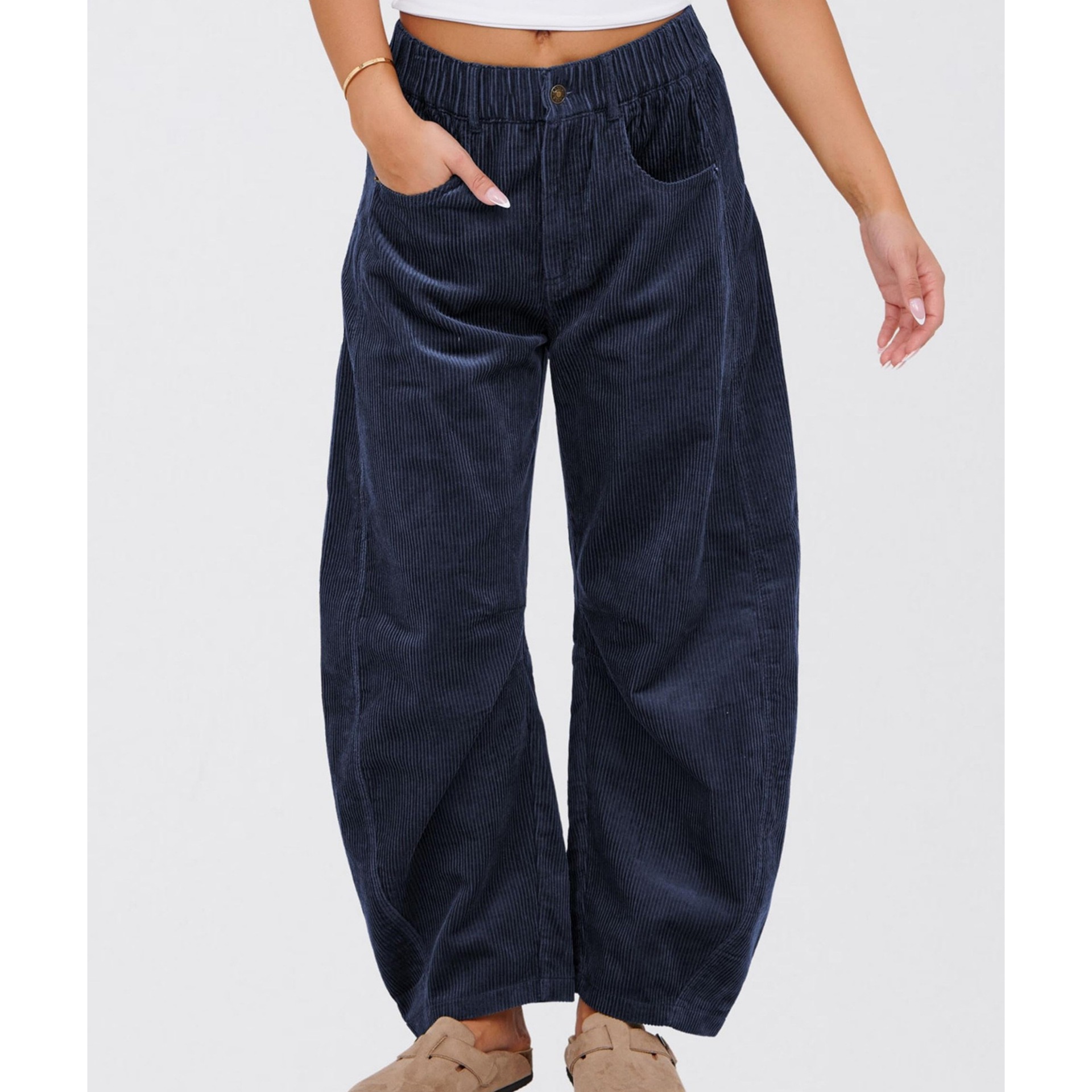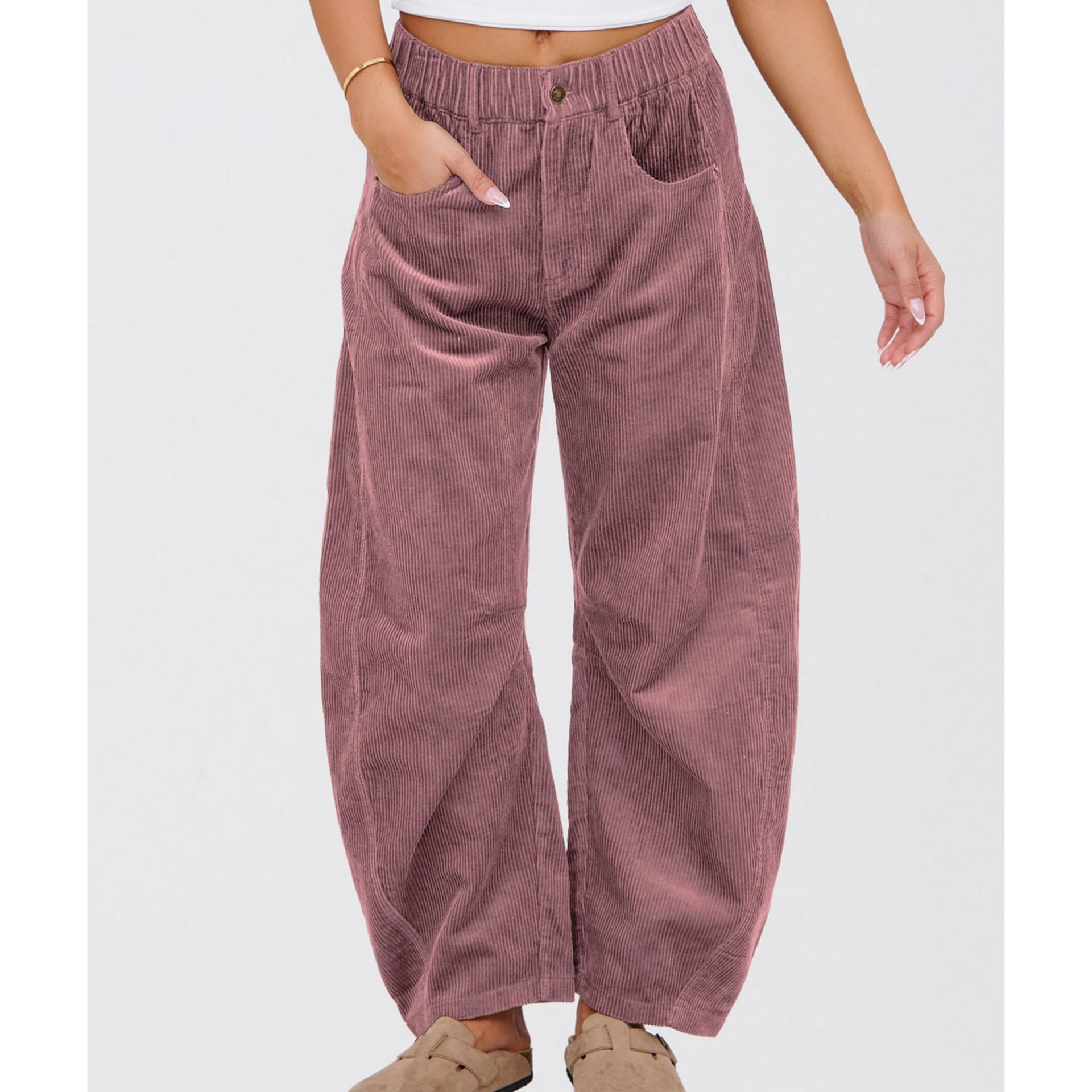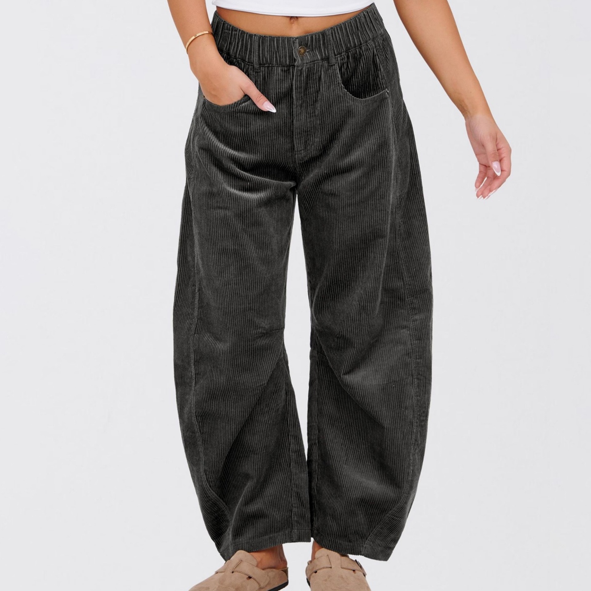 European And American Solid Color Corduroy Loose Straight Trousers Women