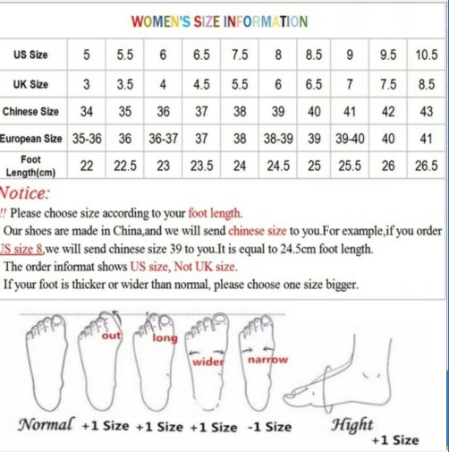 1. Asian sizes are 1 to 2 sizes smaller than European and American people. Choose the larger size if your size between two sizes. Please allow 2-3cm differences due to manual measurement.
