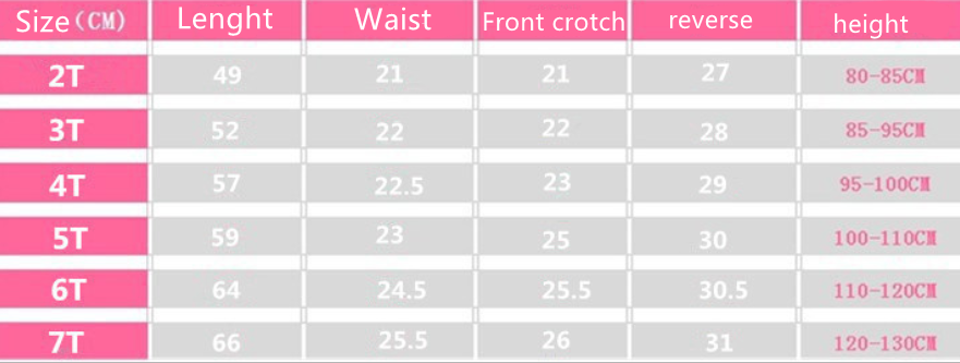 Suitable height:: the recommended height for tag 2T is 80-90, the recommended height for tag 3T is 90-95, the recommended height for tag 4T is 95-100, the recommended height for tag 5T is 100-110, the recommended height for tag 6T is 110-120, and the recommended height for tag 7T is 120- 130