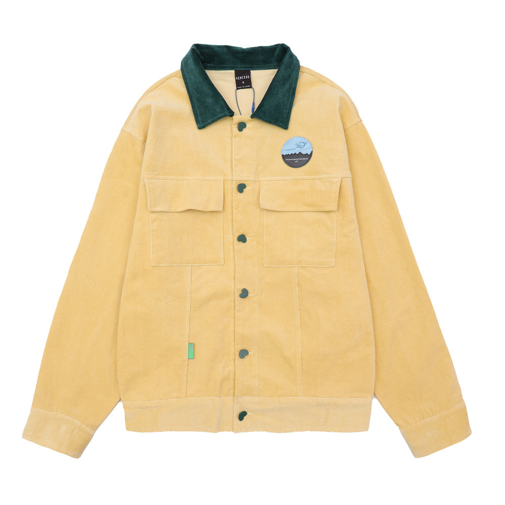European And American Style Badge Contrast Color Corduroy Jacket Men's Lapel Jacket Jacket
