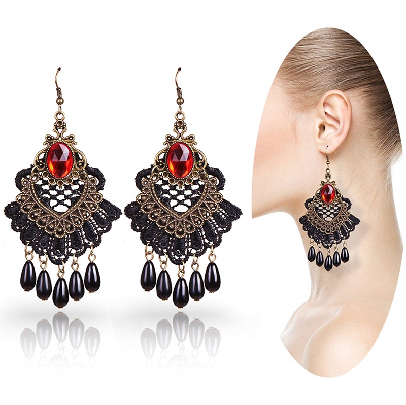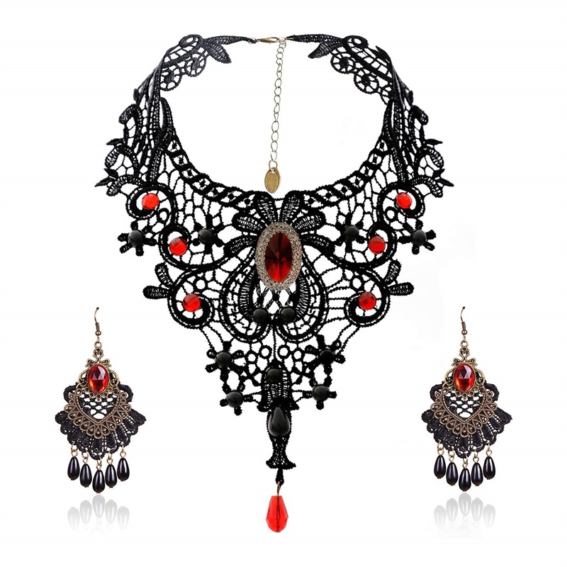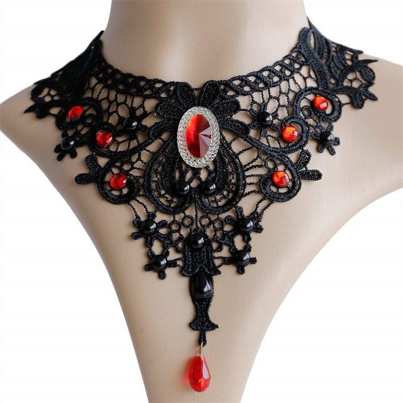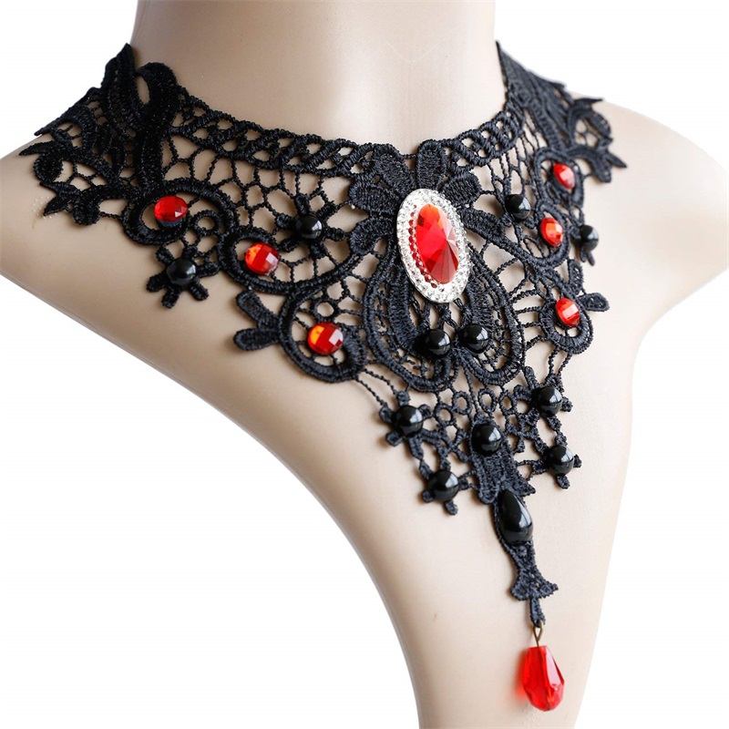 European And American Style Black Clavicle Chain Retro Lace Female V-neck Flower Halloween Series