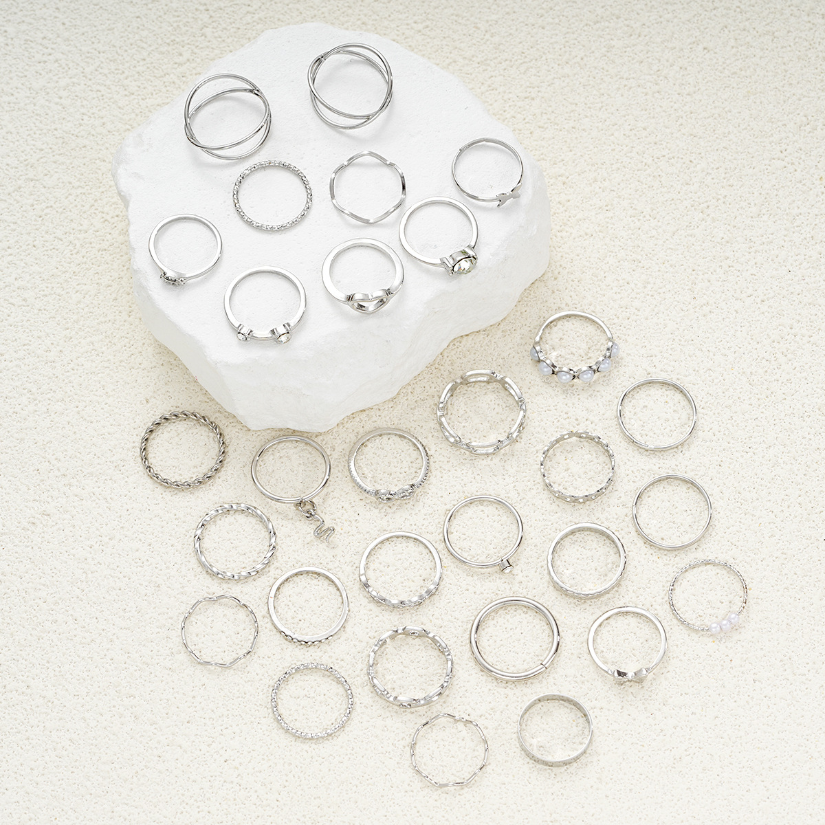 European And American Style Creative Personalized Snake-shaped Butterfly Pearl Ring 30-piece Set