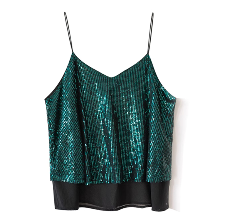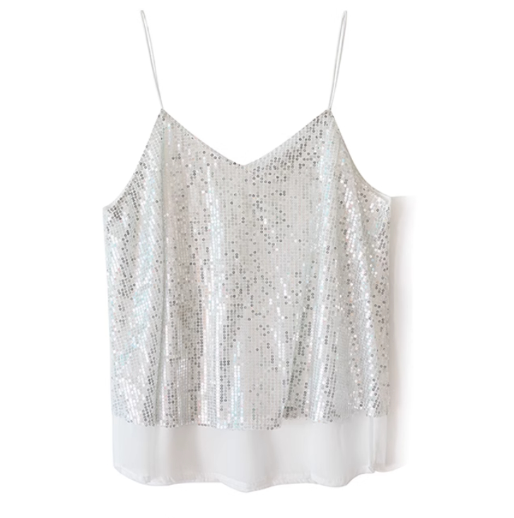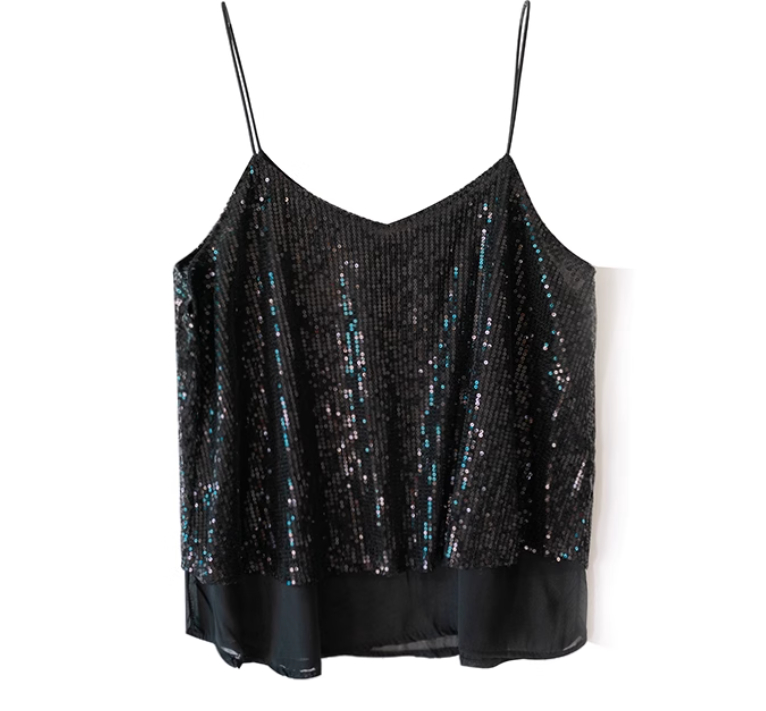 European And American Style Design Sense Niche Nightclub V-neck Glitter Heavy Industry Small Sling