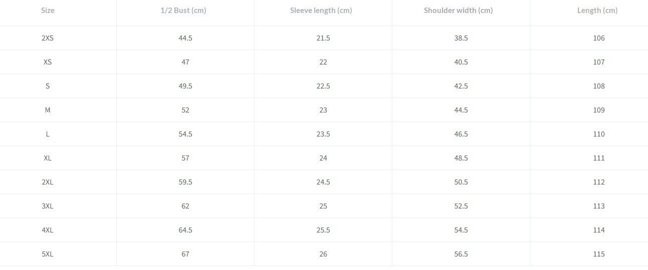 Sizes: 2XS, XS, S, M, L, XL, XXL, 3XL, 4XL